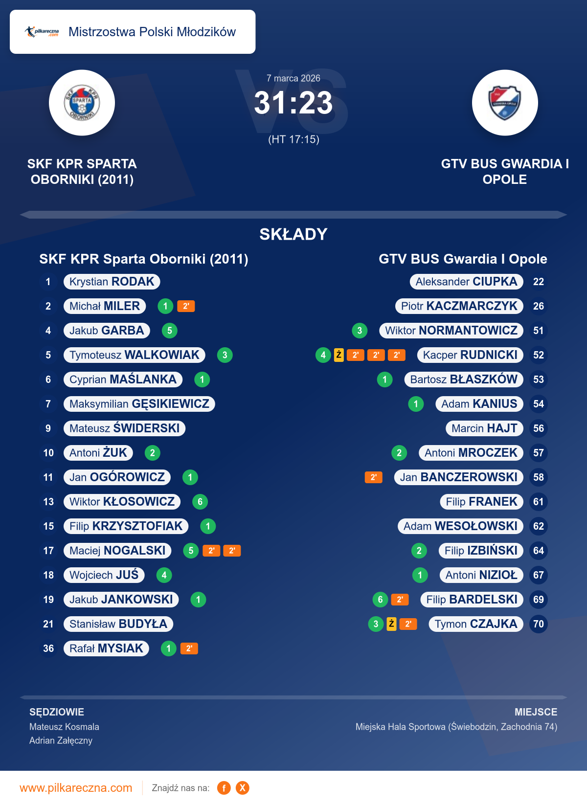 Sędziowali: Mateusz Kosmala, Adrian Załęczny