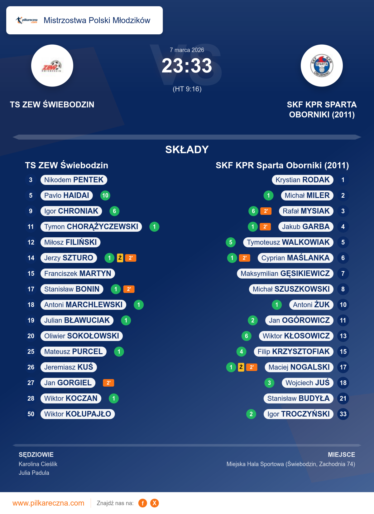 Zawodnicy: Rafał Mysiak (6), Wiktor Kłosowicz (6), Tymoteusz Walkowiak (5), Filip Krzysztofiak (4), Wojciech Juś (3), Igor Troczyński (2), Jan Ogórowicz (2), Antoni Żuk (1), Cyprian Maślanka (1), Jakub Garba (1), Maciej Nogalski (1), Michał Miler (1), Maksymilian Gęsikiewicz, Michał Szuszkowski, Stanisław Budyła