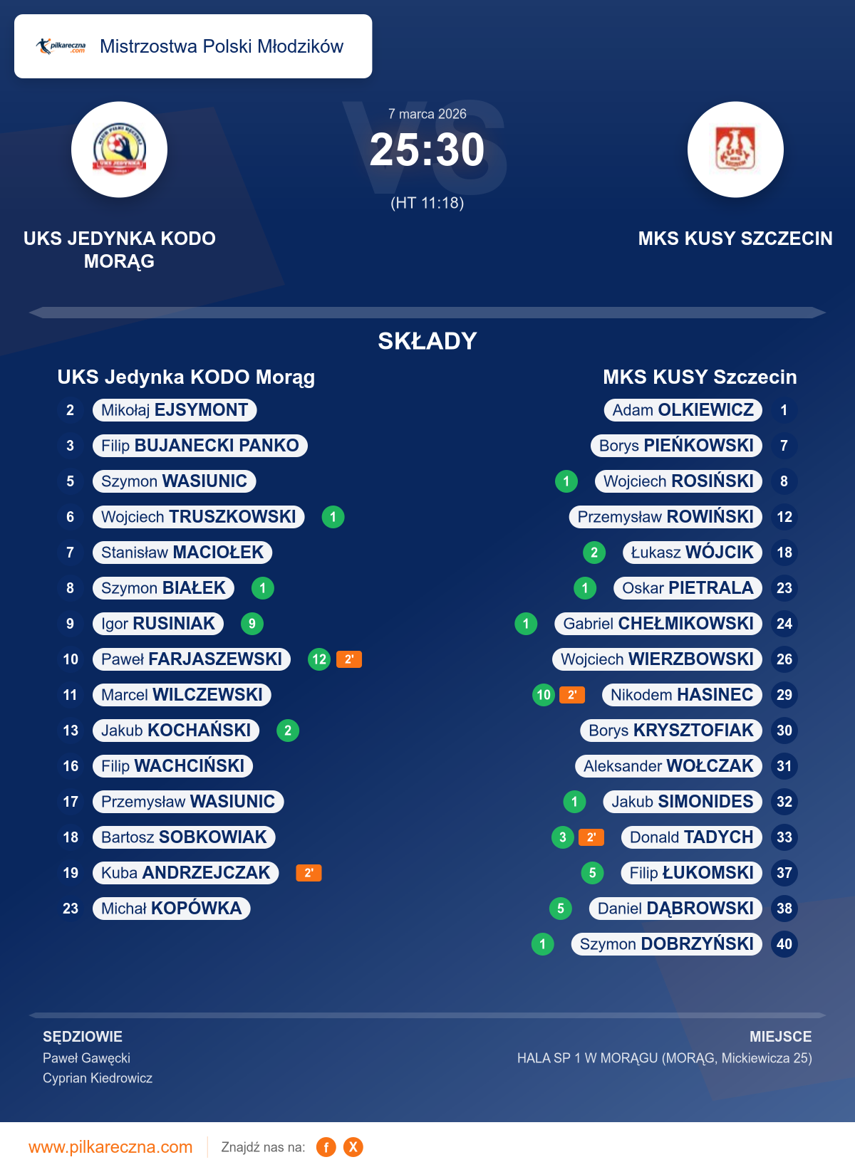 UKS Jedynka KODO Morąg — MKS KUSY Szczecin