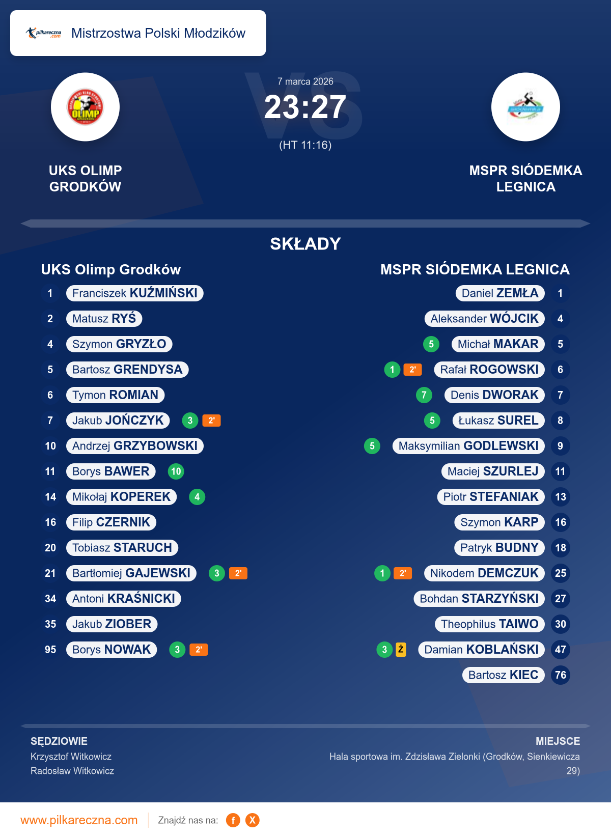 Sędziowali: Krzysztof Witkowicz, Radosław Witkowicz