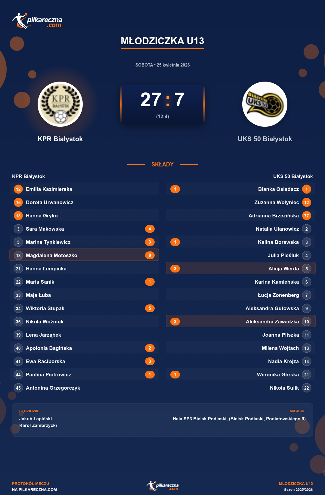 KPR Białystok 27–7 UKS 50 Białystok