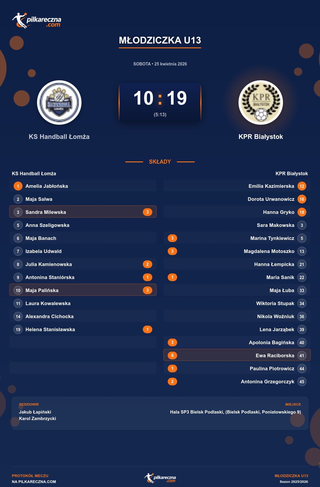KS Handball Łomża 10–19 KPR Białystok
