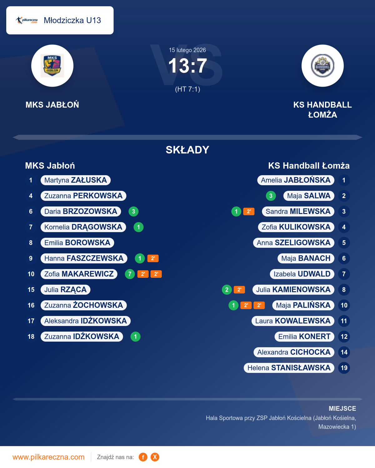 Zawodnicy: Zofia Makarewicz (7), Daria Brzozowska (3), Hanna Faszczewska (1), Kornelia Drągowska (1), Zuzanna Idźkowska (1), Aleksandra Idźkowska, Emilia Borowska, Julia Rząca, Martyna Załuska, Zuzanna Perkowska, Zuzanna Żochowska