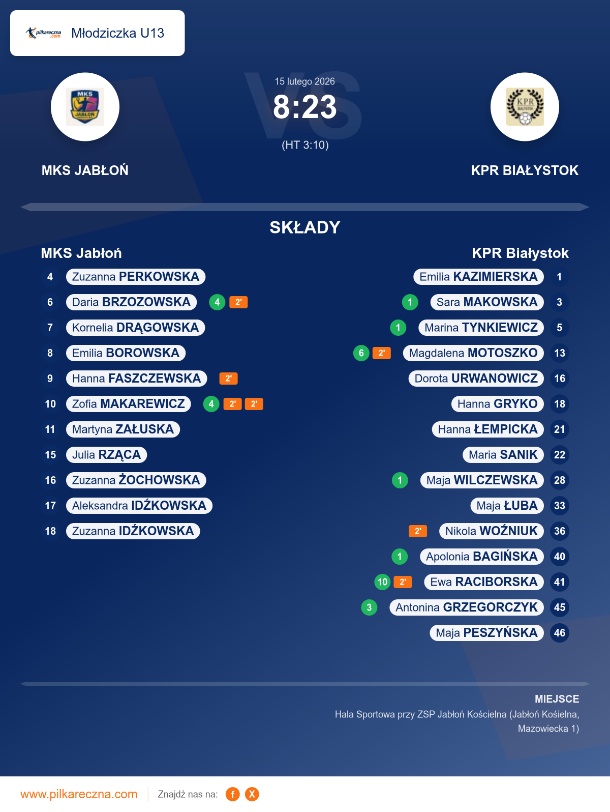 Zawodnicy: Ewa Raciborska (10), Magdalena Motoszko (6), Antonina Grzegorczyk (3), Apolonia Bagińska (1), Maja Wilczewska (1), Marina Tynkiewicz (1), Sara Makowska (1), Hanna Łempicka, Maja Łuba, Maja Peszyńska, Maria Sanik, Nikola Woźniuk