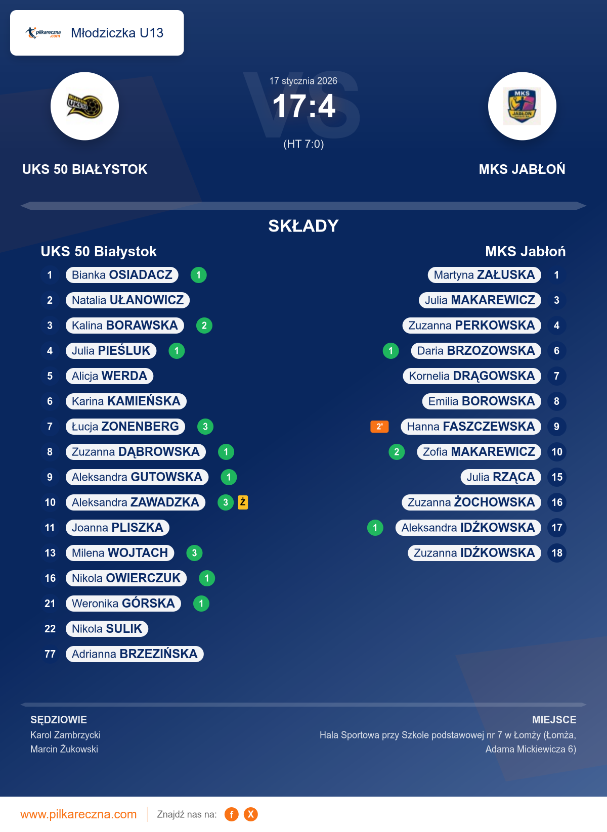UKS 50 Białystok 17–4 MKS Jabłoń