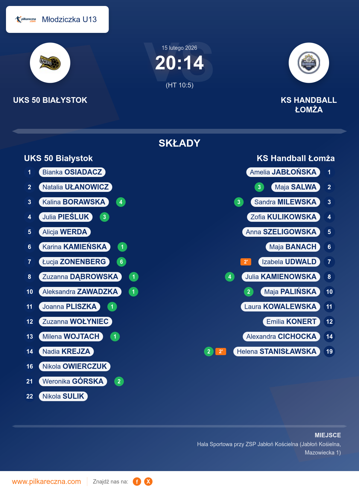 UKS 50 Białystok 20–14 KS Handball Łomża