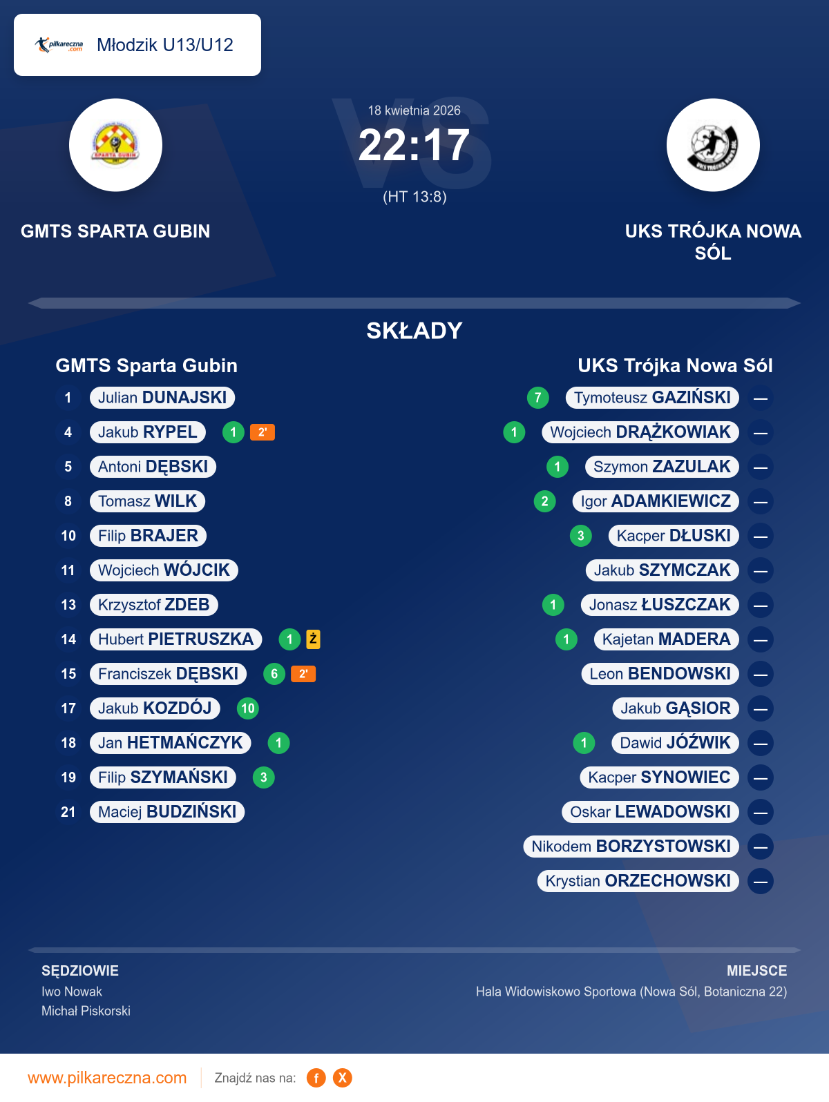 GMTS Sparta Gubin 22–17 UKS Trójka Nowa Sól