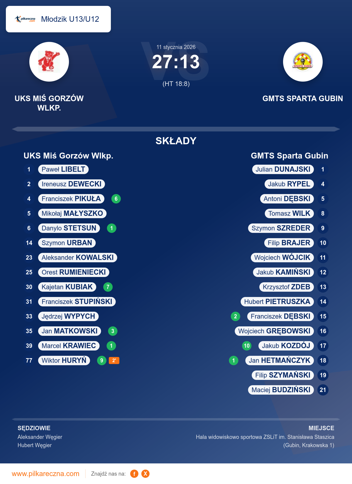 UKS Miś Gorzów Wlkp. 27–13 GMTS Sparta Gubin