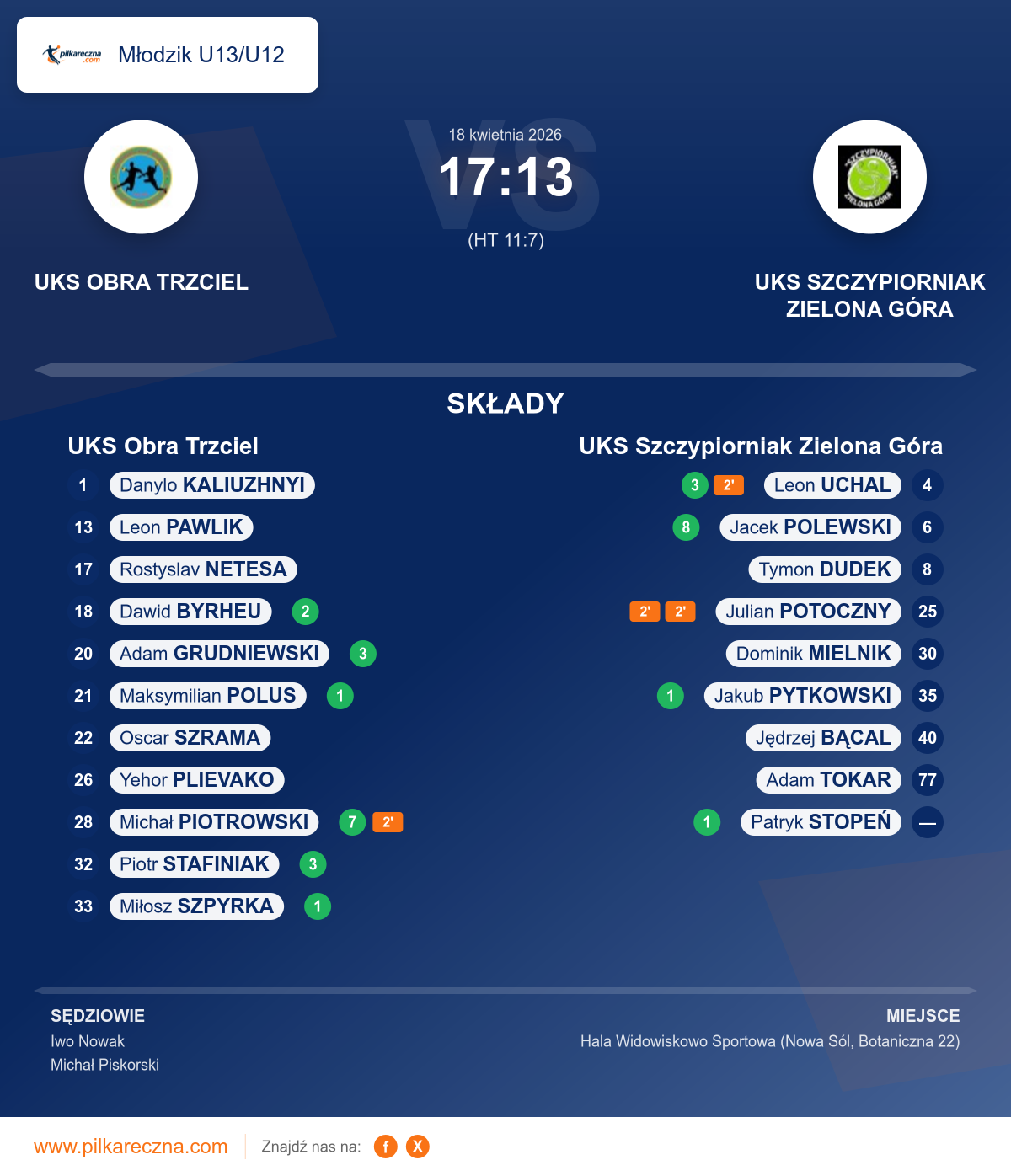UKS Obra Trzciel 17–13 UKS Szczypiorniak Zielona Góra