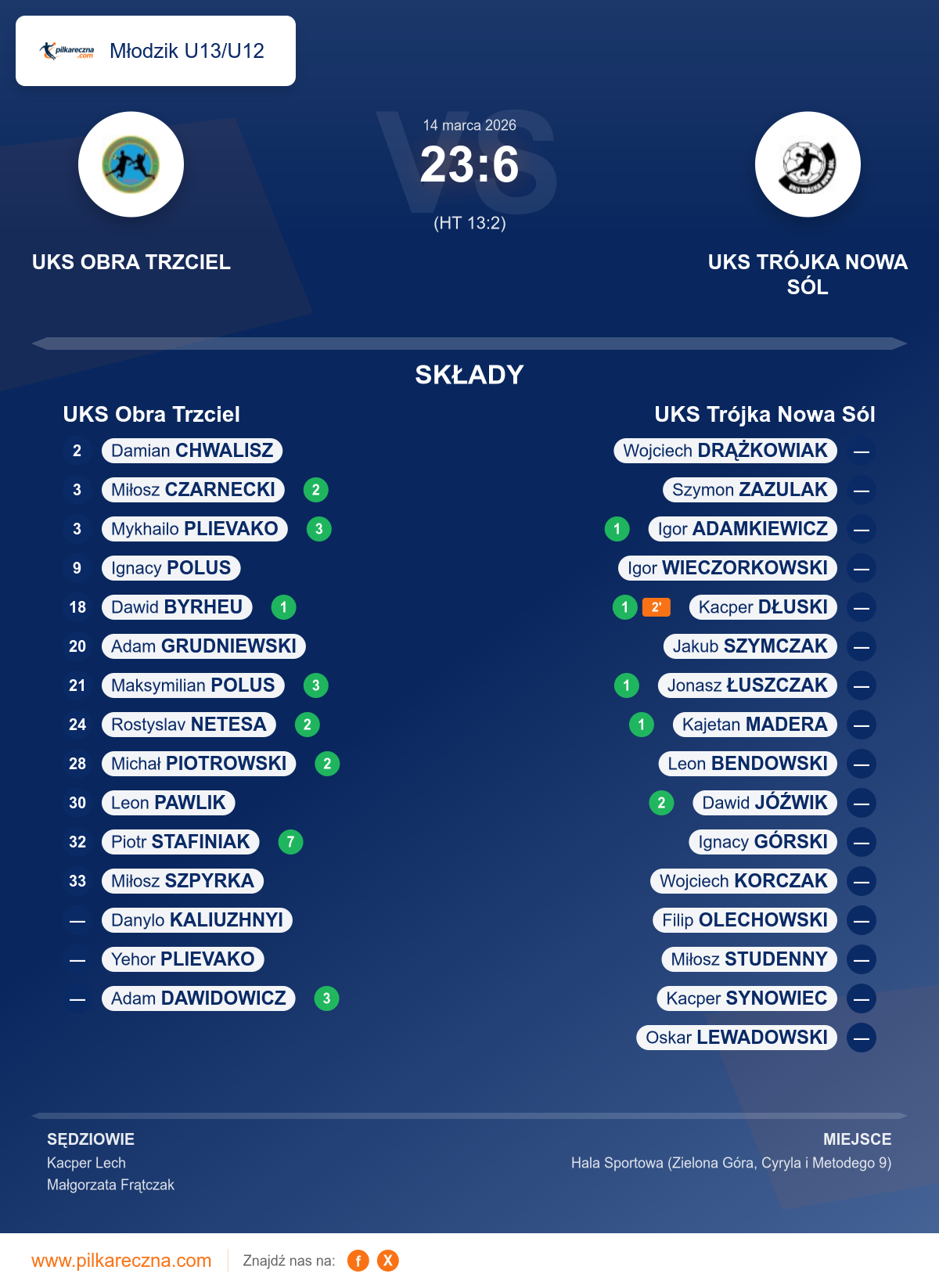 UKS Obra Trzciel 23–6 UKS Trójka Nowa Sól