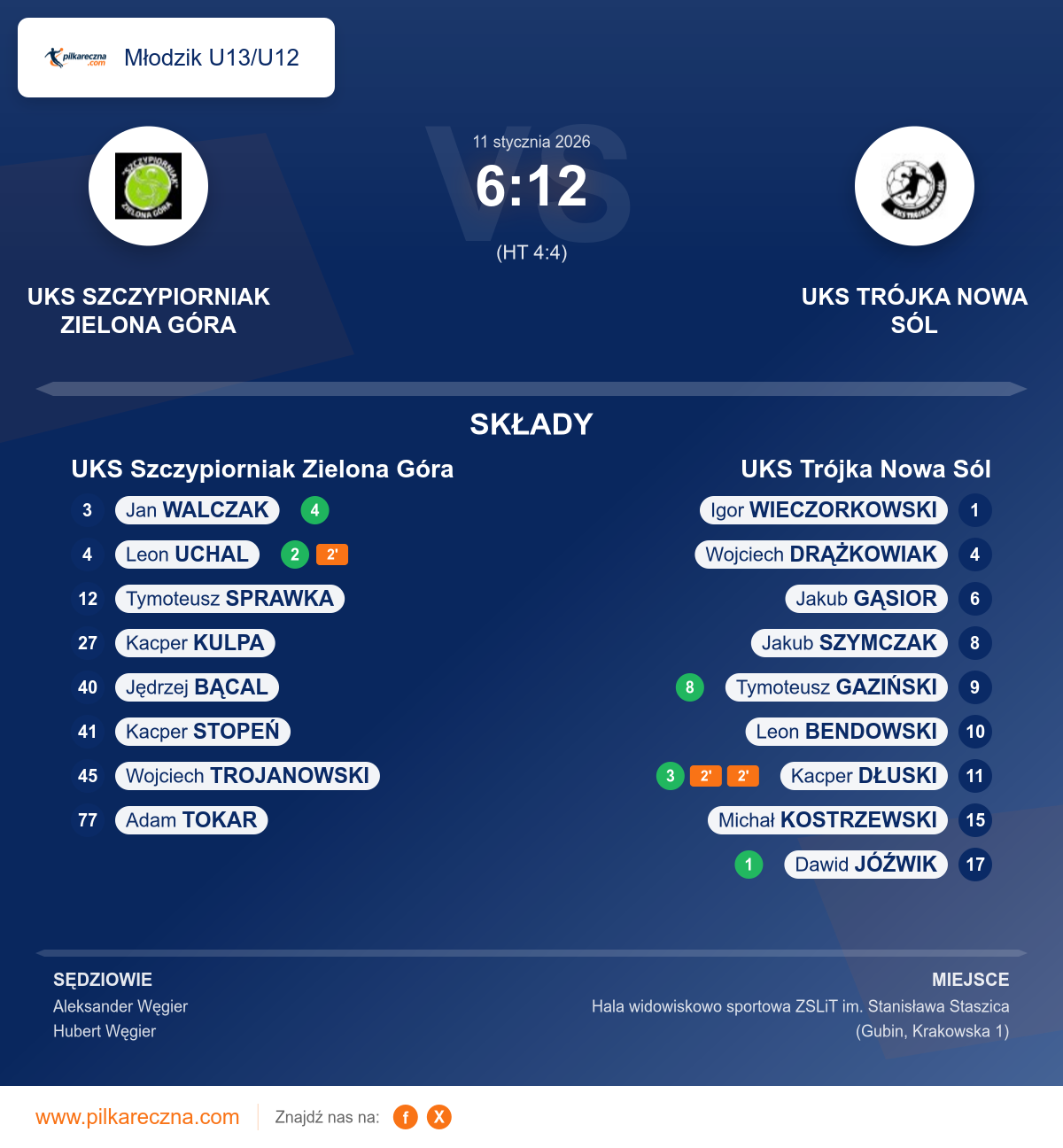 UKS Szczypiorniak Zielona Góra 6–12 UKS Trójka Nowa Sól