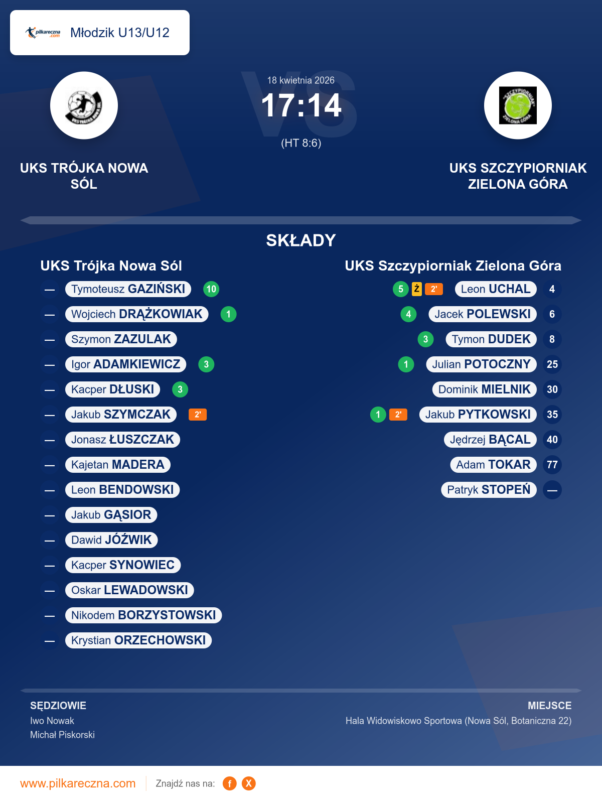 UKS Trójka Nowa Sól 17–14 UKS Szczypiorniak Zielona Góra