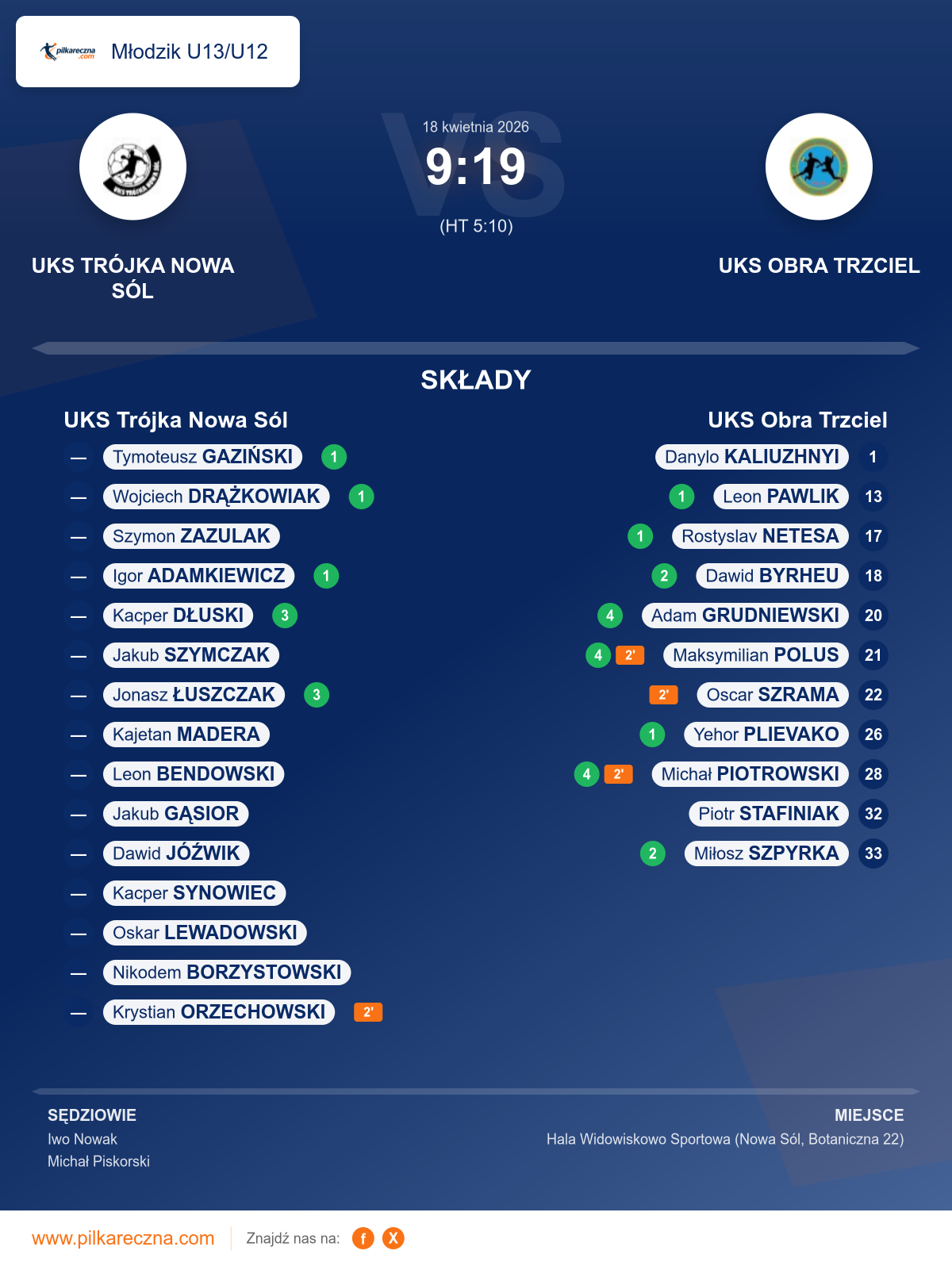 UKS Trójka Nowa Sól 9–19 UKS Obra Trzciel