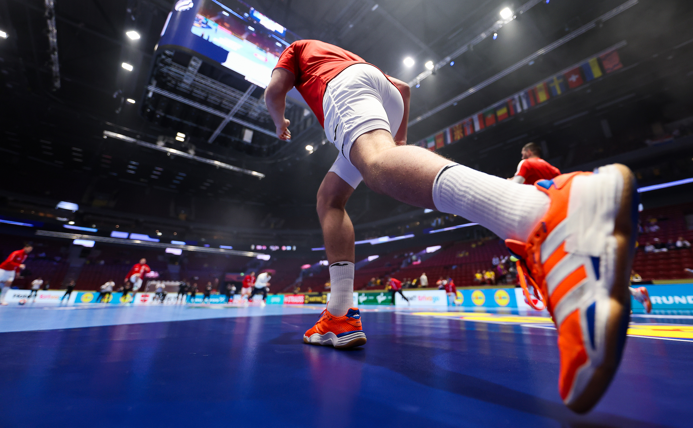 Dzień wcześniej, w niedzielę, kibice byli świadkami niezwykłych wydarzeń. Wyspy Owcze odniosły pierwsze zwycięstwo w historii mistrzostw, pokonując Czarnogórę 37:24. Macedonia Północna zremisowała z Portugalią, a Słowenia, osłabiona kontuzjami przed turniejem, dokonała niewiarygodnego comebacku w meczu ze Szwajcarią – odrobiła stratę ośmiu bramek i wygrała 38:35, zapewniając sobie awans do fazy głównej.