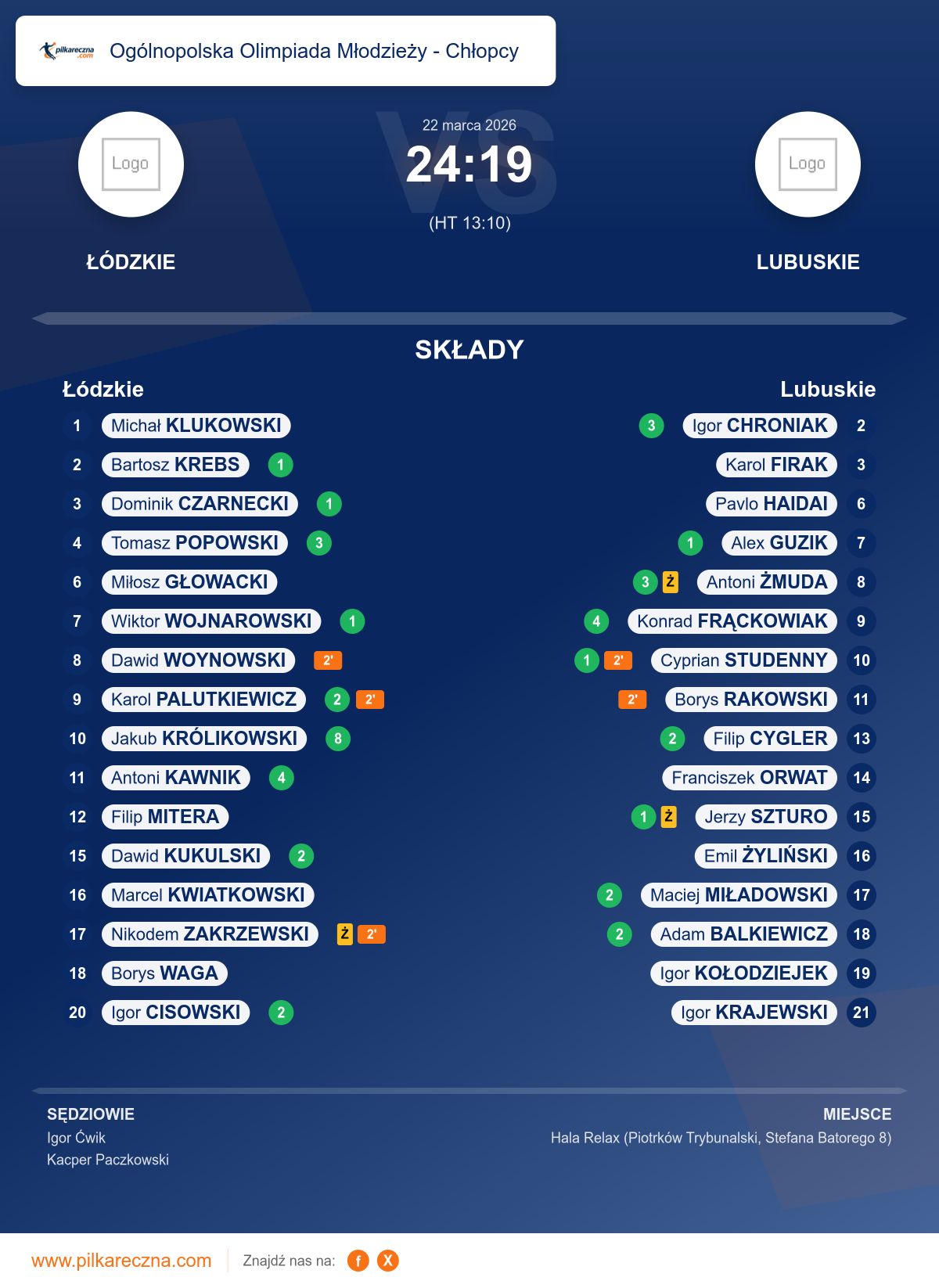 Sędziowali: Igor Ćwik, Kacper Paczkowski