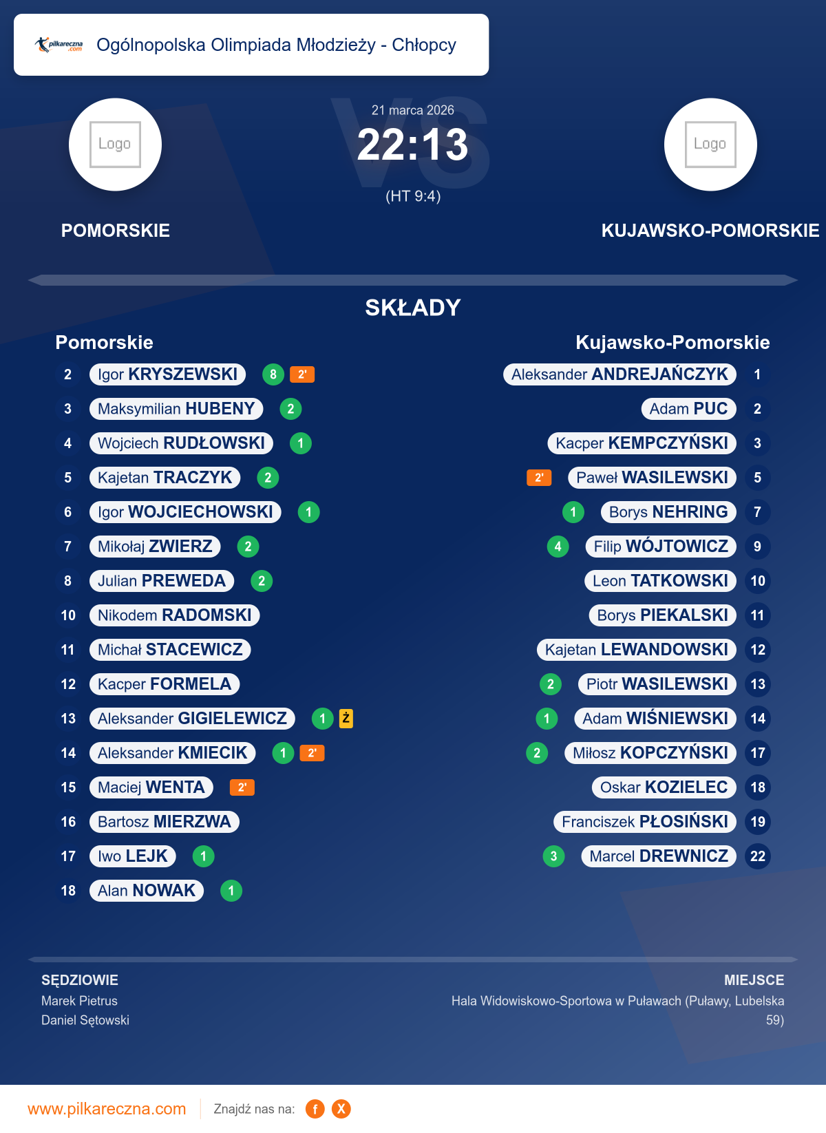 Wynik: 22–13 (HT 9–4)