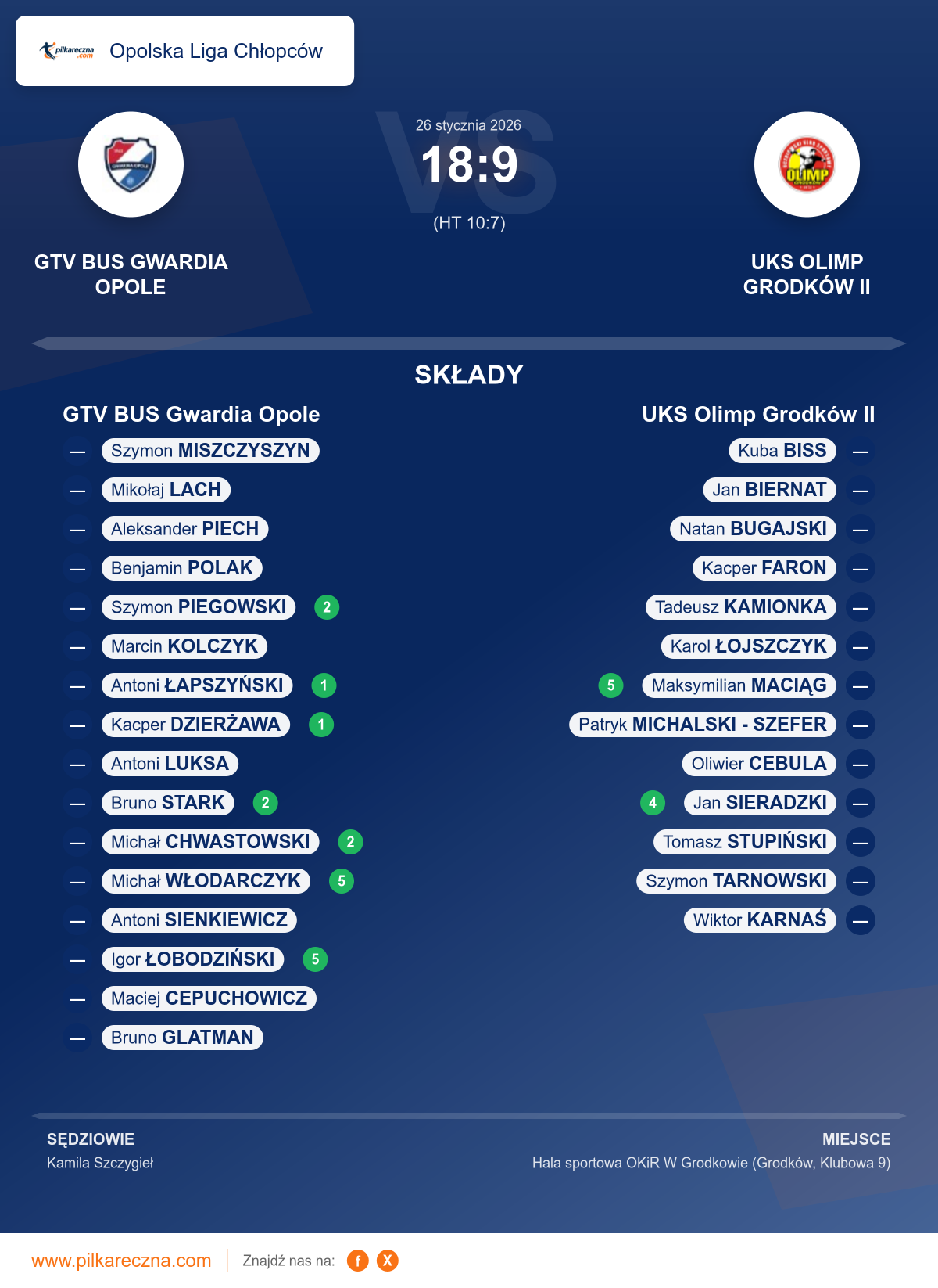 GTV BUS Gwardia Opole 18–9 UKS Olimp Grodków II