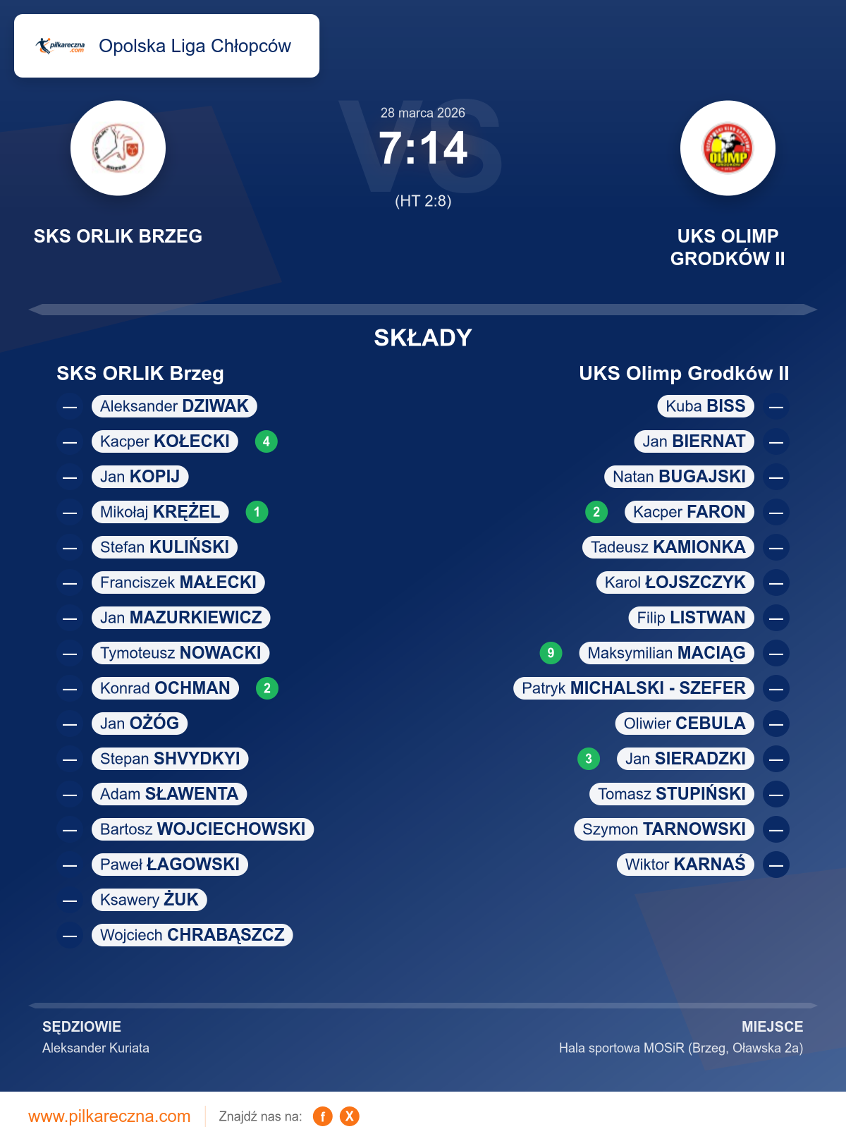 SKS ORLIK Brzeg 7–14 UKS Olimp Grodków II
