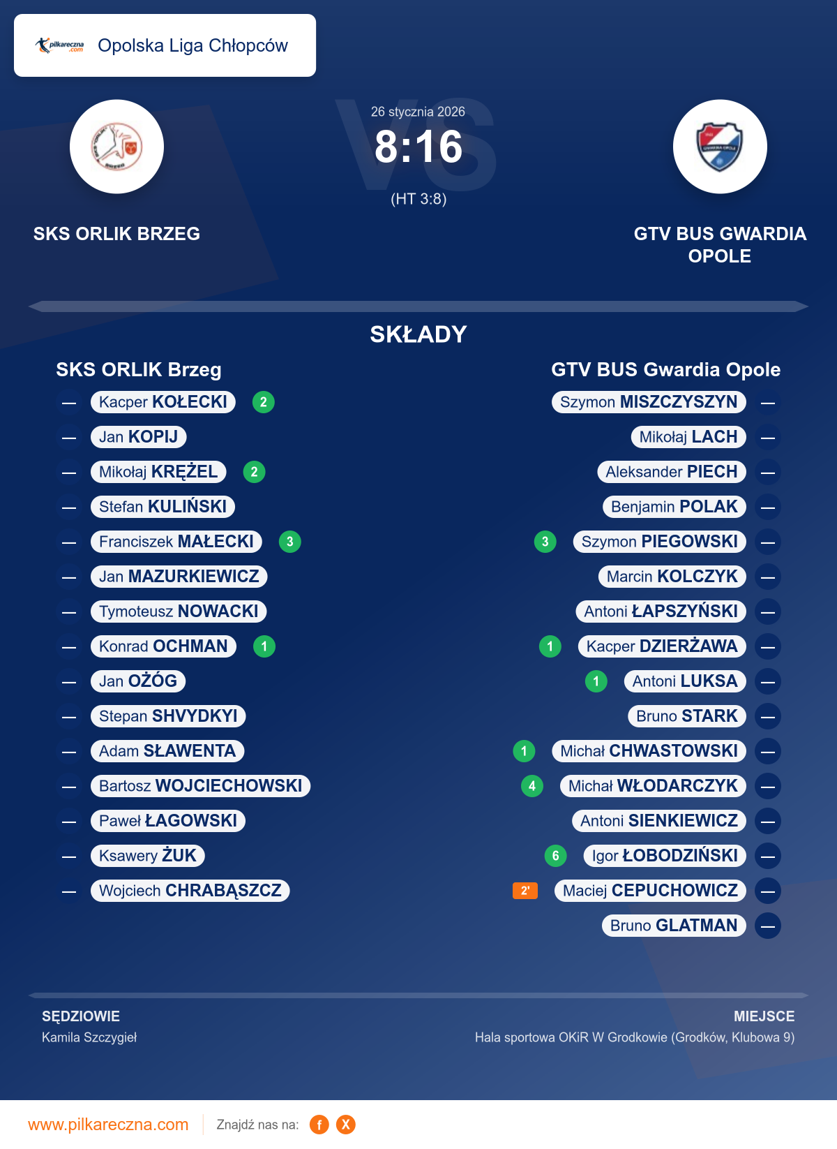 SKS ORLIK Brzeg 8–16 GTV BUS Gwardia Opole