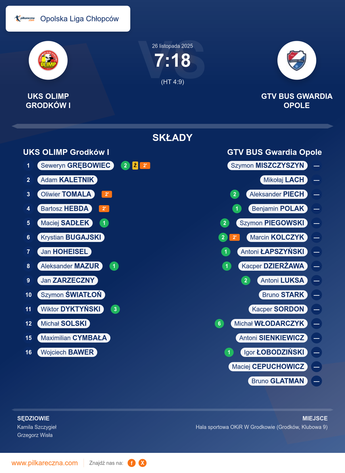UKS OLIMP Grodków I 7–18 GTV BUS Gwardia Opole