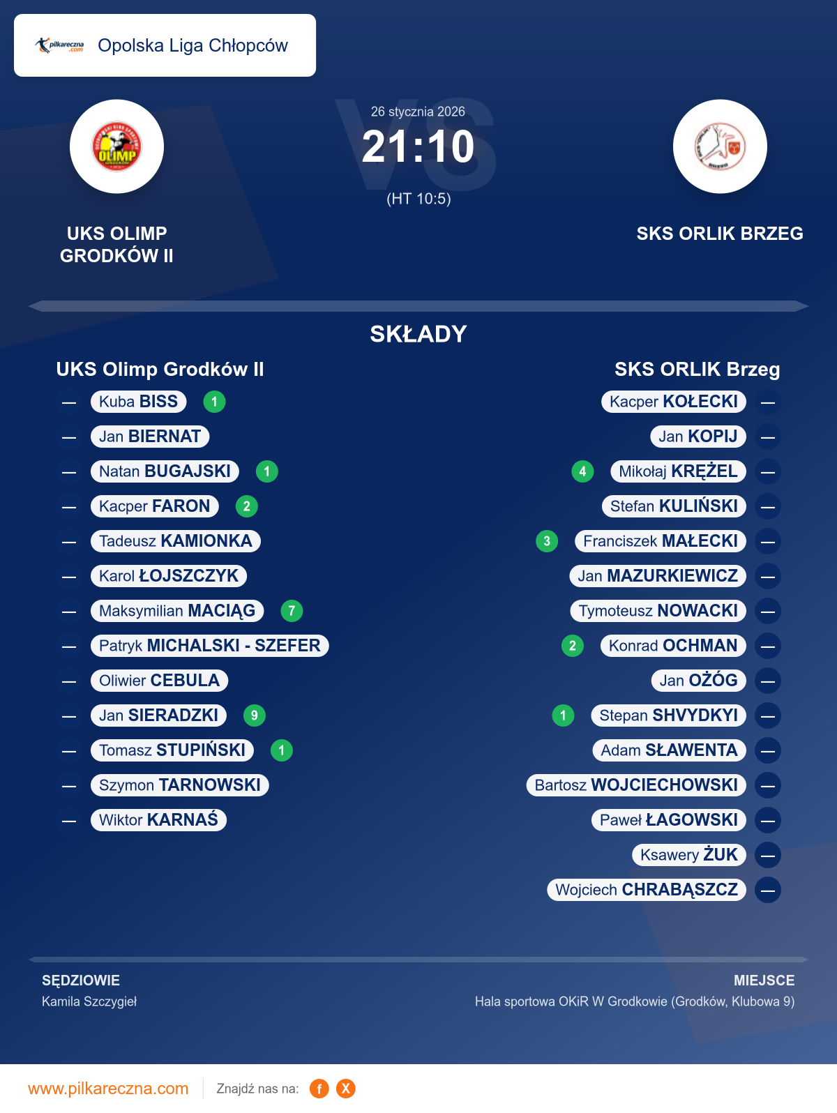 UKS Olimp Grodków II 21–10 SKS ORLIK Brzeg
