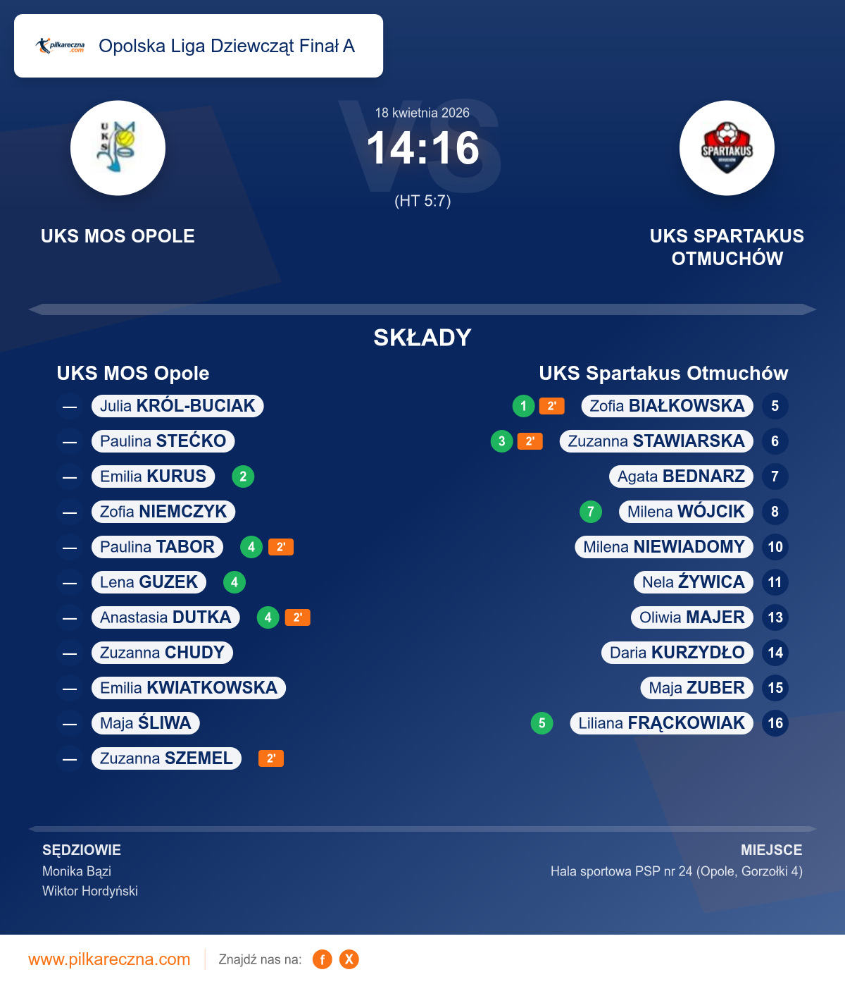 UKS MOS Opole 14–16 UKS Spartakus Otmuchów