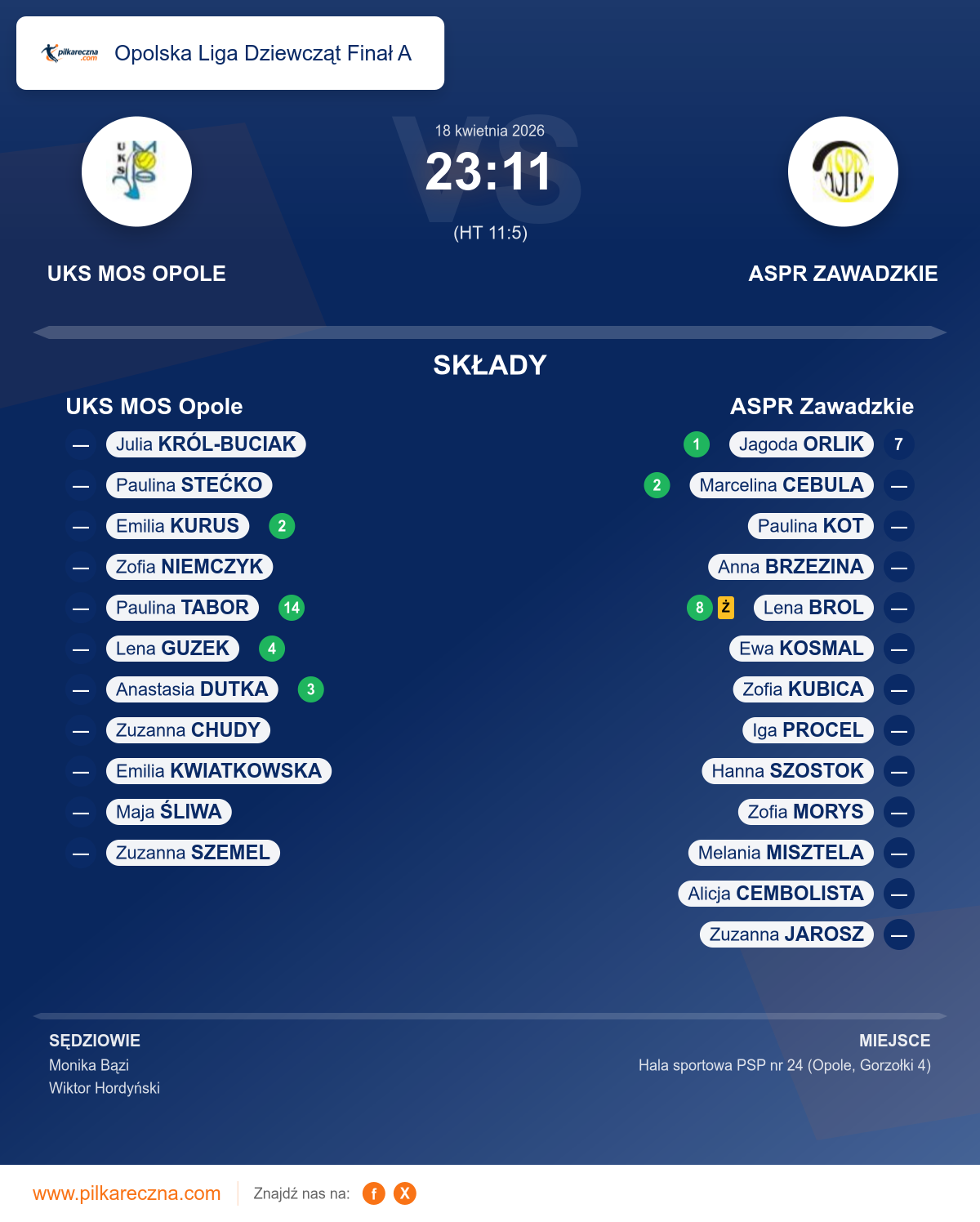 UKS MOS Opole 23–11 ASPR Zawadzkie