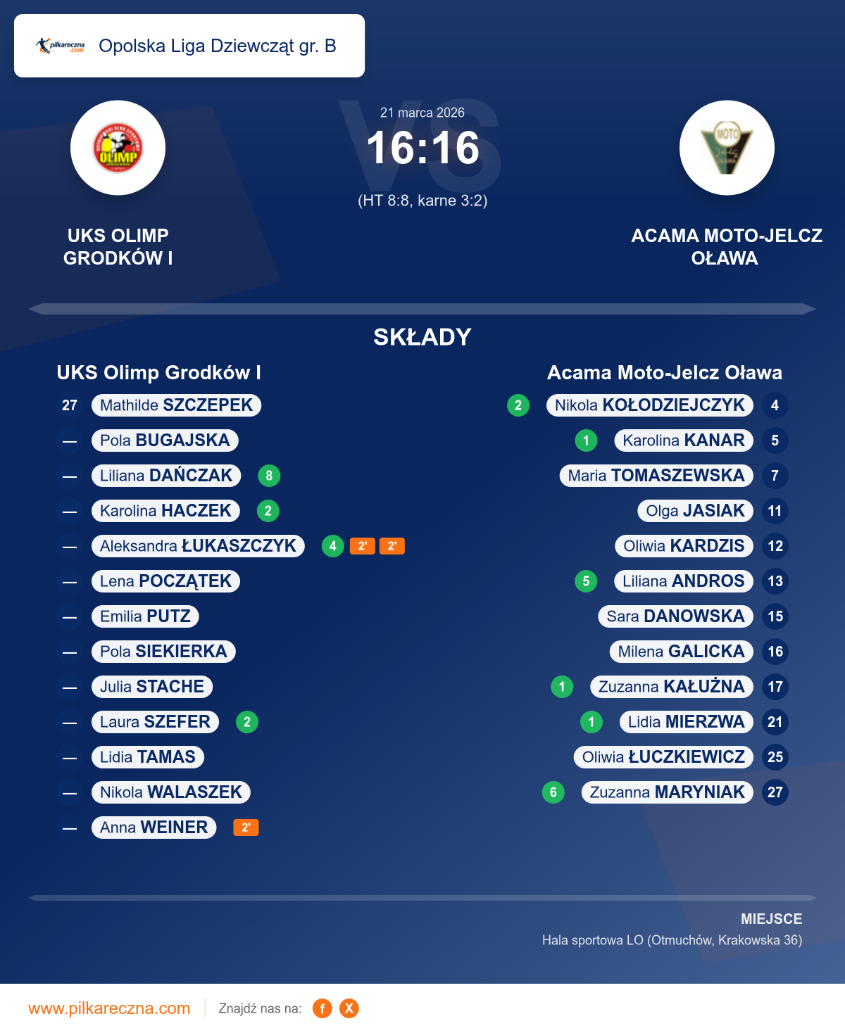 UKS Olimp Grodków I 16–16 Acama Moto-Jelcz Oława