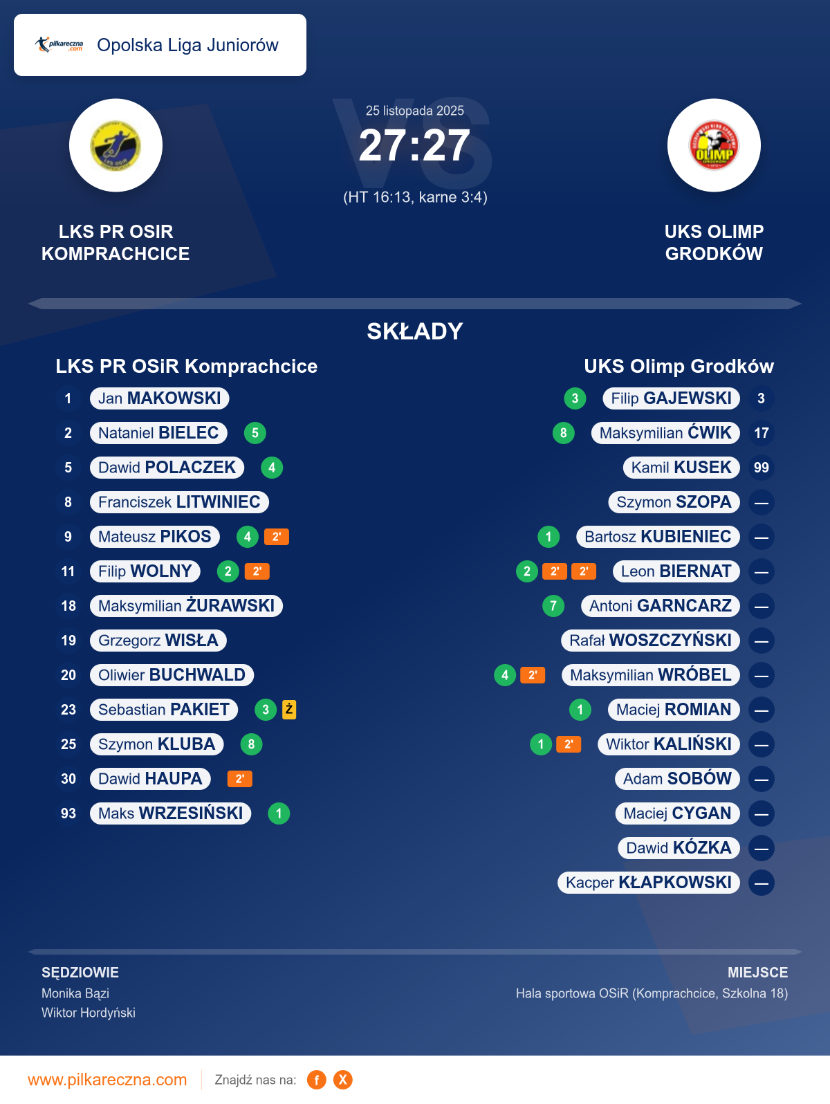 LKS PR OSiR Komprachcice 27–27 UKS Olimp Grodków