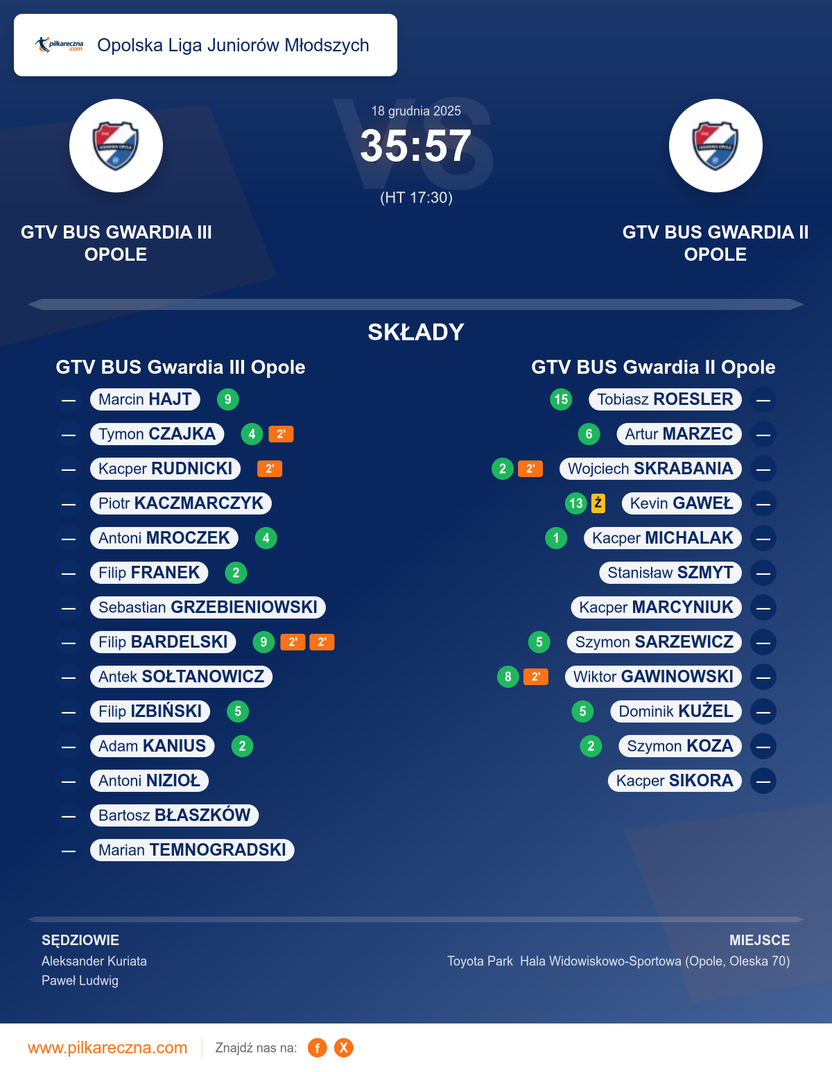 Zawodnicy: Filip Bardelski (9), Marcin Hajt (9), Filip Izbiński (5), Antoni Mroczek (4), Tymon Czajka (4), Adam Kanius (2), Filip Franek (2), Antek Sołtanowicz, Antoni Nizioł, Bartosz Błaszków, Kacper Rudnicki, Marian Temnogradski, Piotr Kaczmarczyk, Sebastian Grzebieniowski