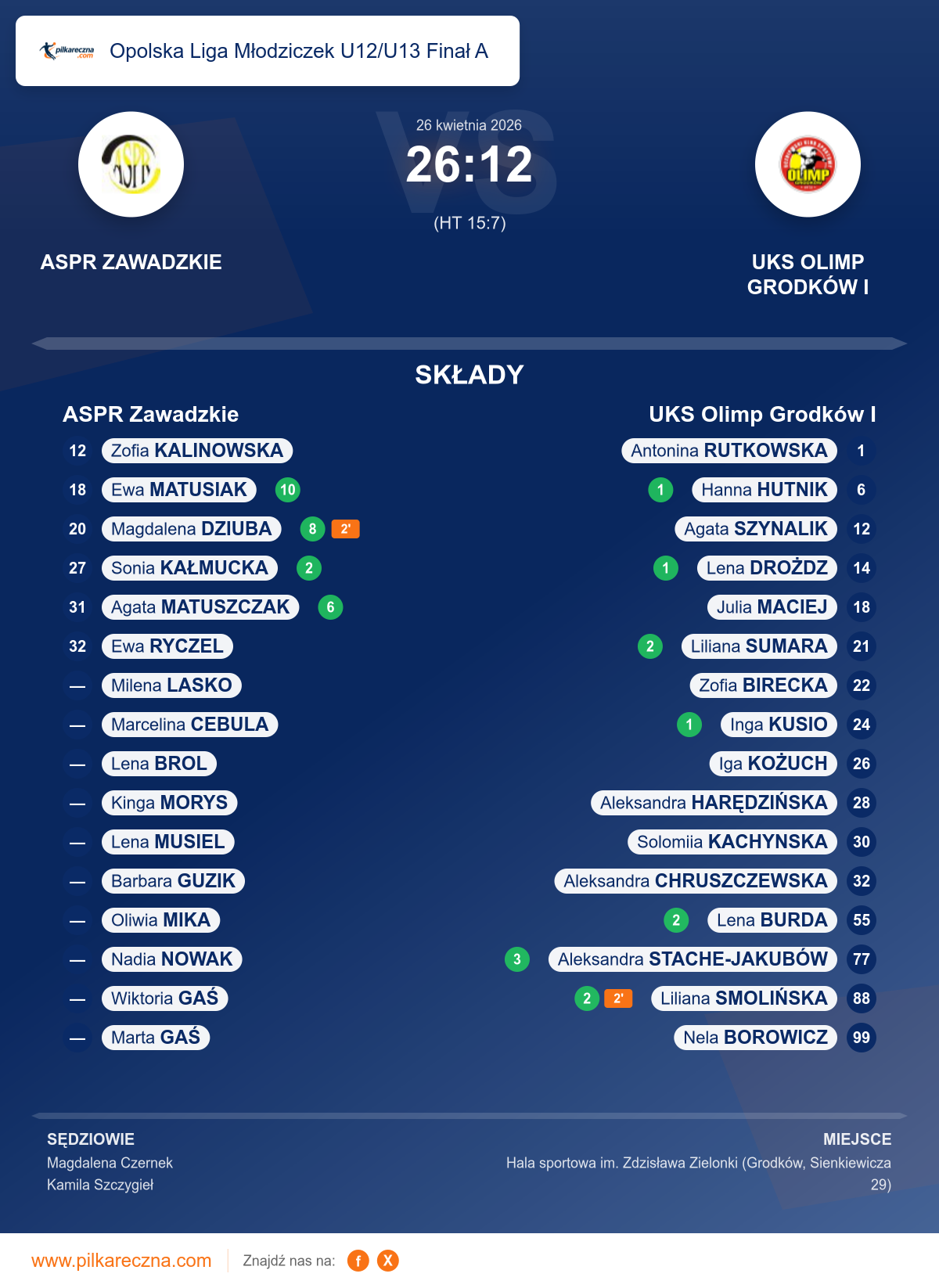 ASPR Zawadzkie 26–12 UKS Olimp Grodków I