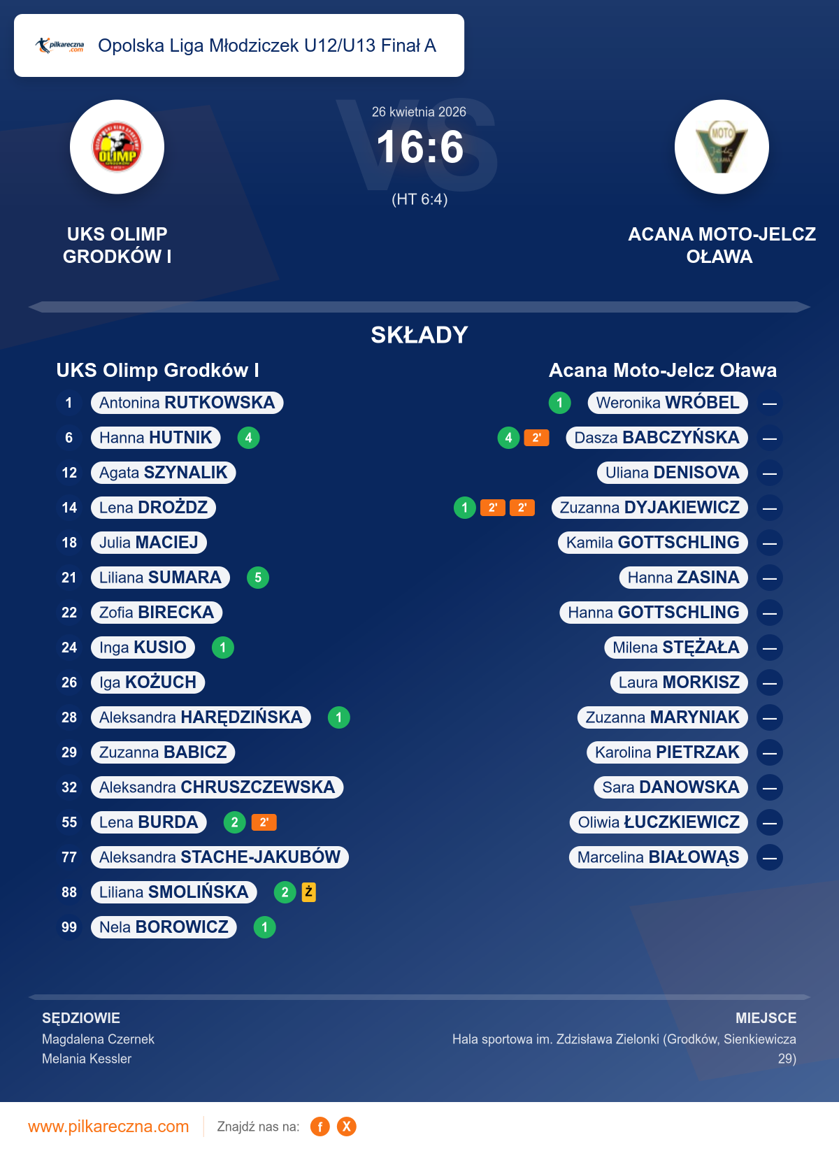 UKS Olimp Grodków I 16–6 Acana Moto-Jelcz Oława