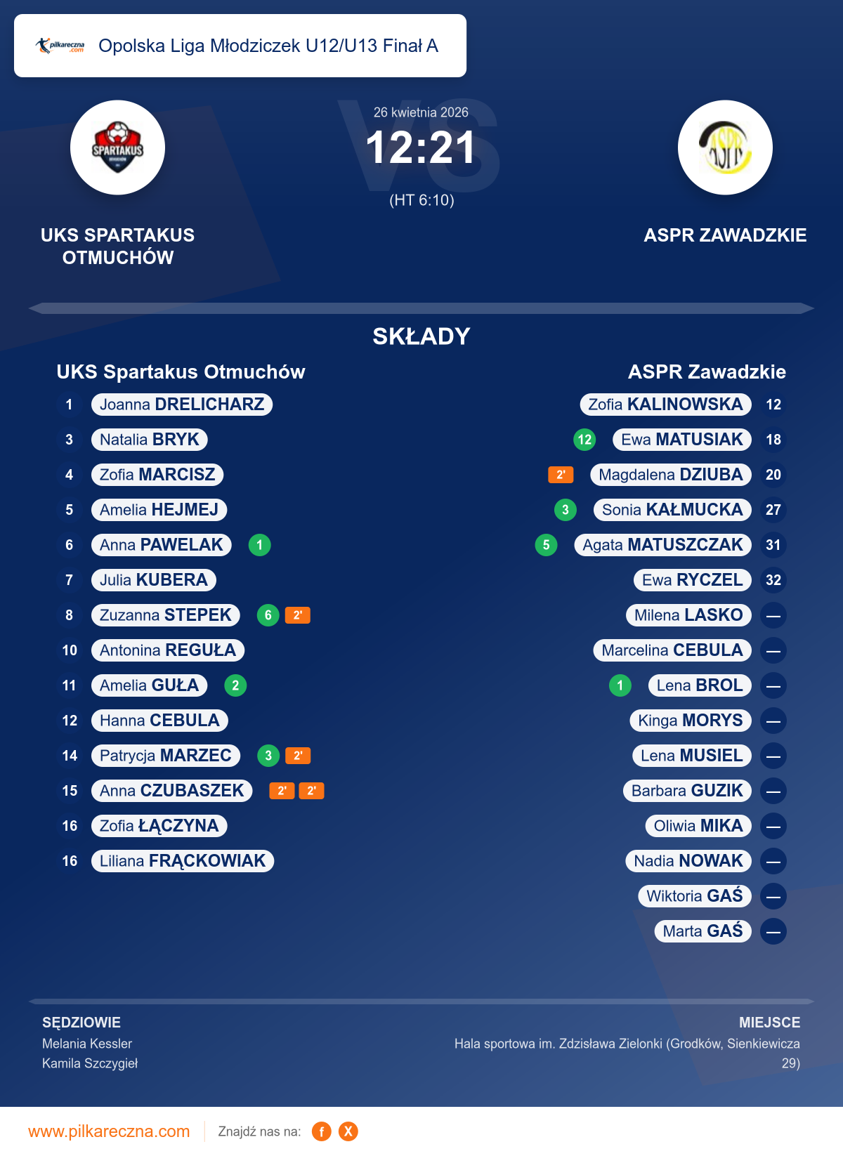 UKS Spartakus Otmuchów 12–21 ASPR Zawadzkie