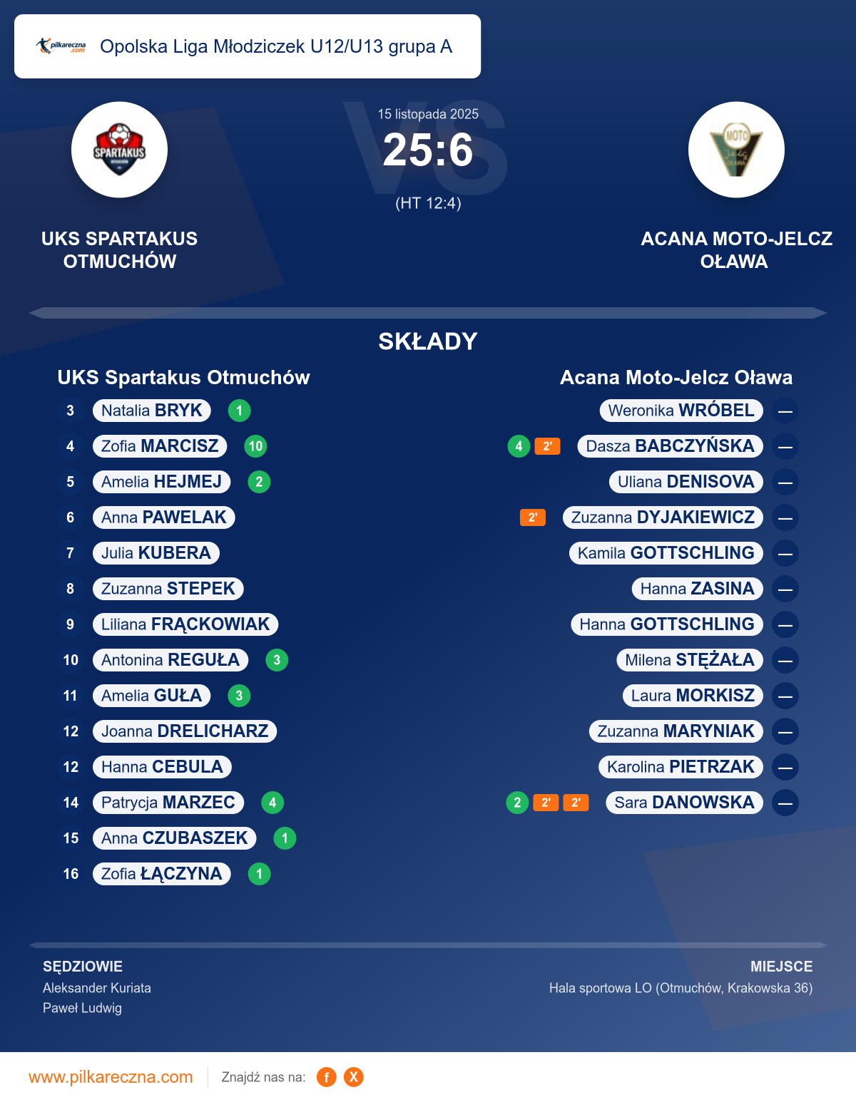 UKS Spartakus Otmuchów 25–6 Acana Moto-Jelcz Oława