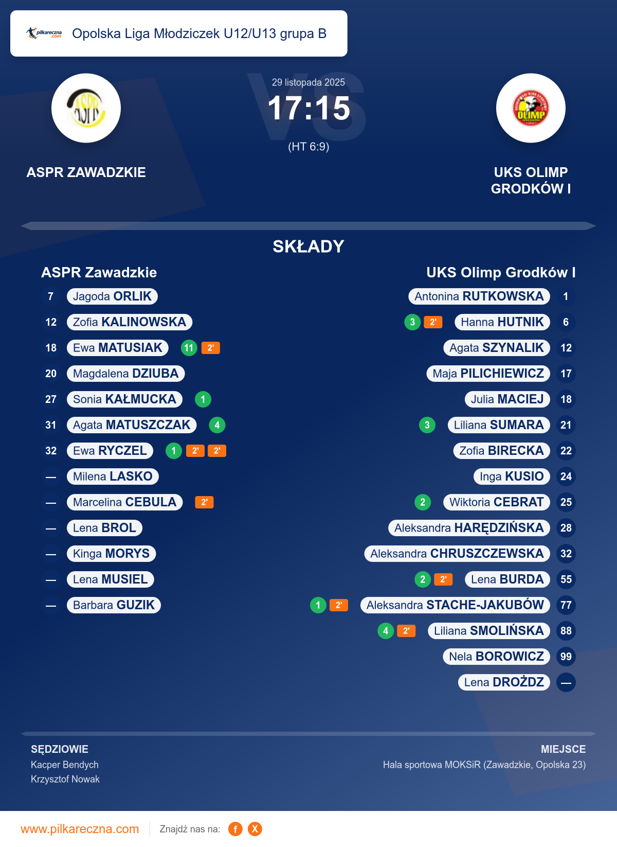 ASPR Zawadzkie 17–15 UKS Olimp Grodków I