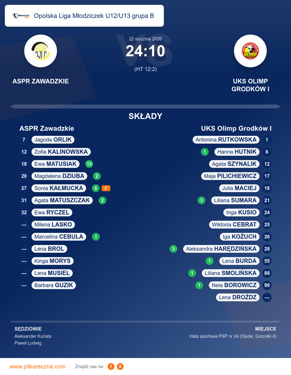 ASPR Zawadzkie 24–10 UKS Olimp Grodków I