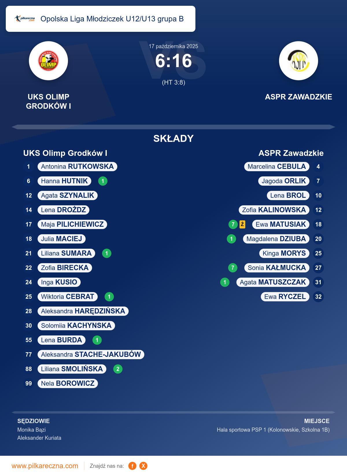 UKS Olimp Grodków I 6–16 ASPR Zawadzkie