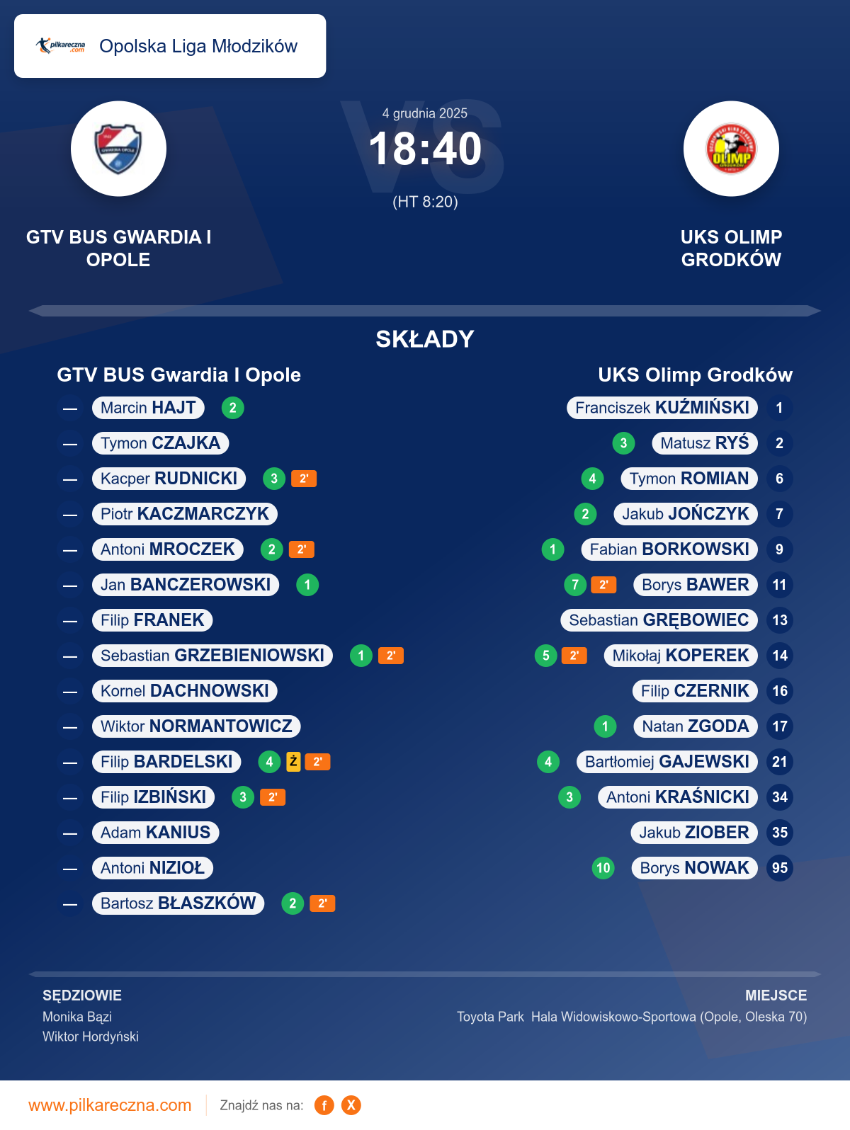 GTV BUS Gwardia I Opole — UKS Olimp Grodków