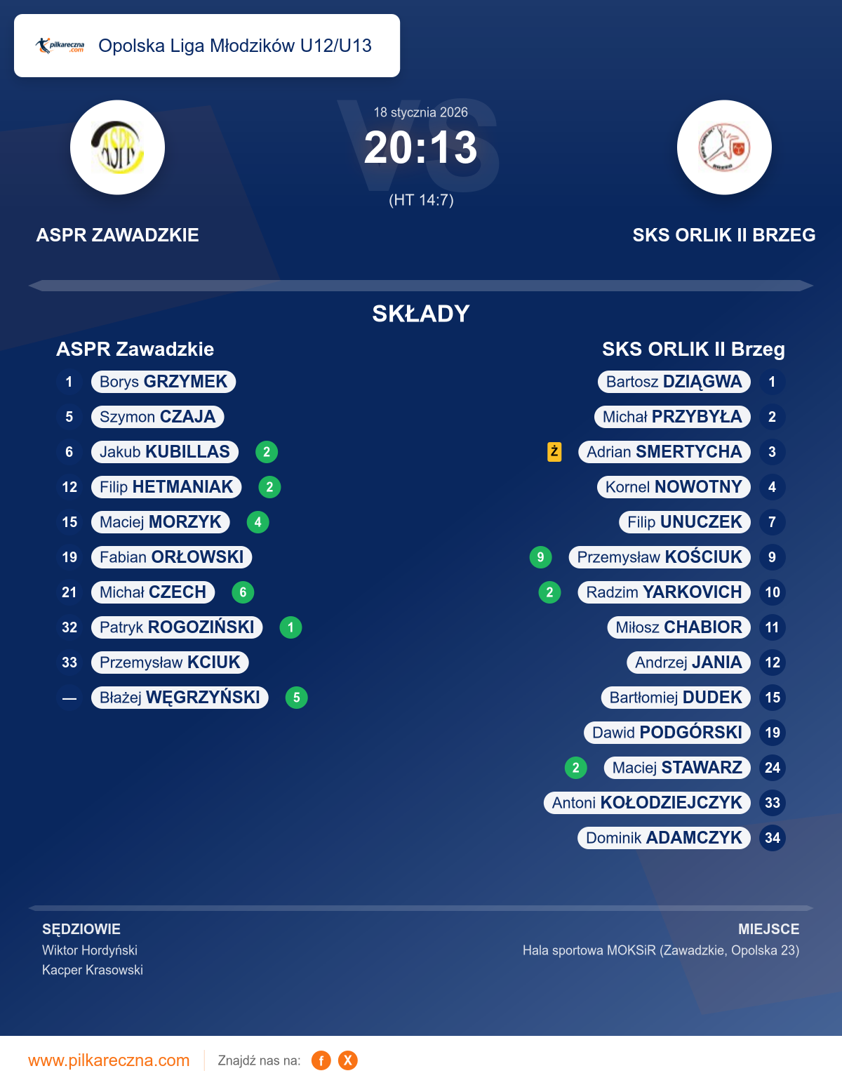 Sędziowali: Wiktor Hordyński, Kacper Krasowski