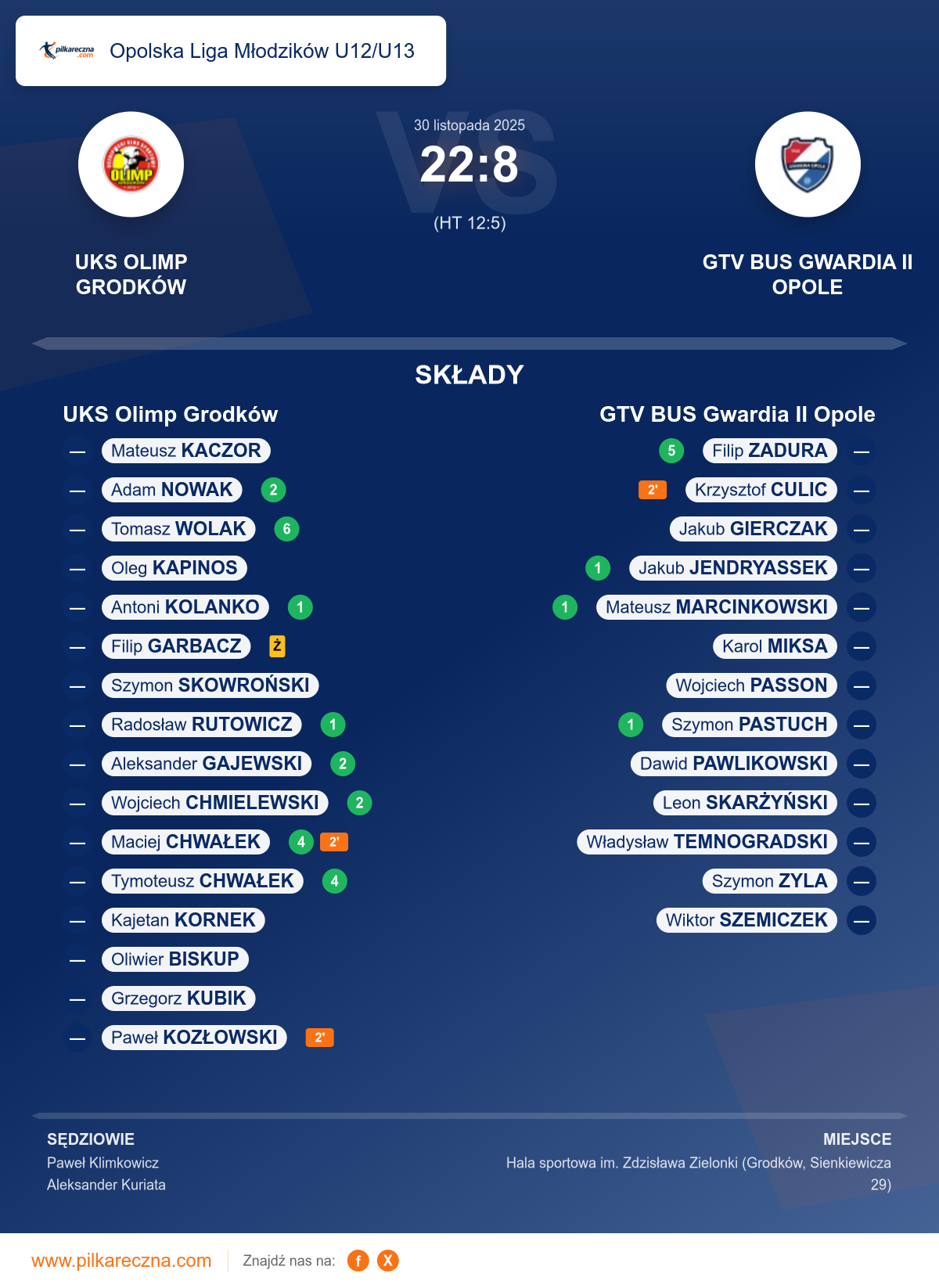 UKS Olimp Grodków 22–8 GTV BUS Gwardia II Opole