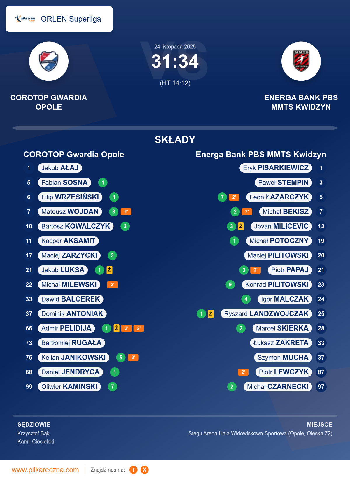 COROTOP Gwardia Opole 31–34 Energa Bank PBS MMTS Kwidzyn