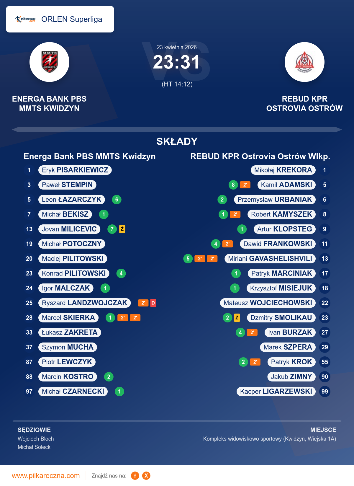 Wynik: 23–31 (HT 14–12)