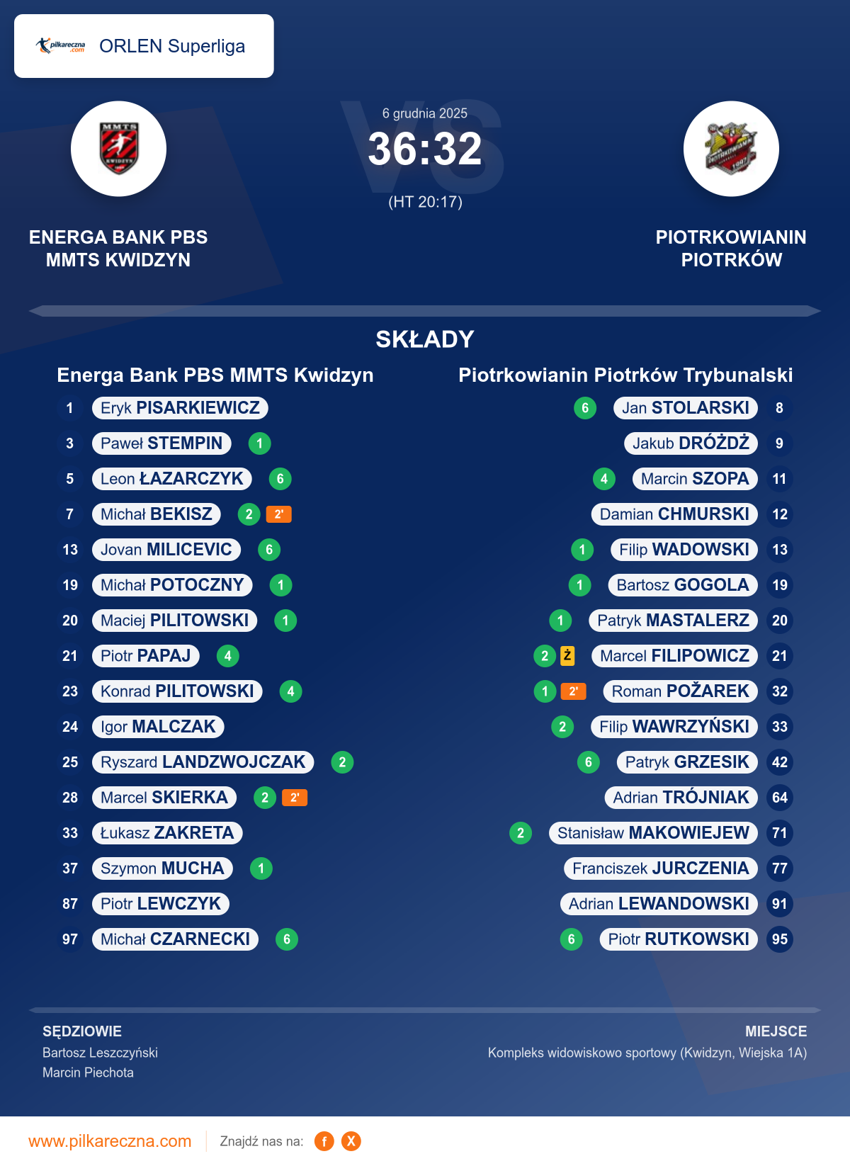 Energa Bank PBS MMTS Kwidzyn 36–32 Piotrkowianin Piotrków Trybunalski