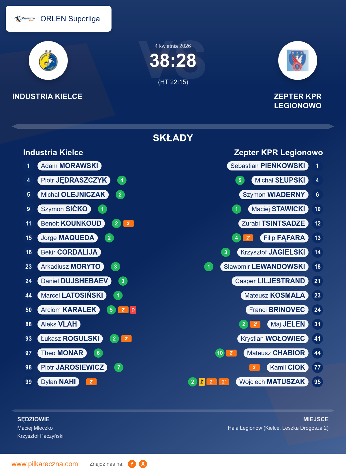Industria Kielce 38–28 Zepter KPR Legionowo