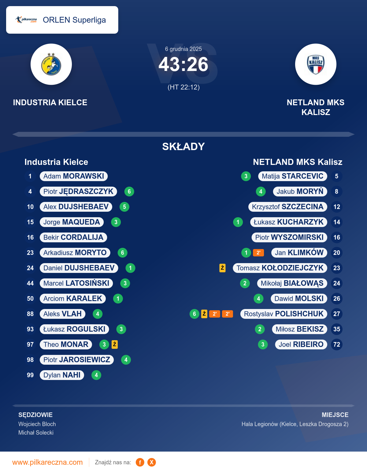 Industria Kielce 43–26 NETLAND MKS Kalisz