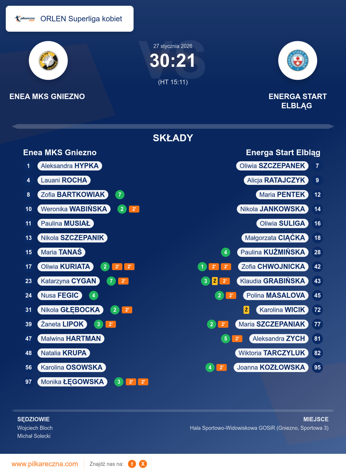 Enea MKS Gniezno 30–21 Energa Start Elbląg