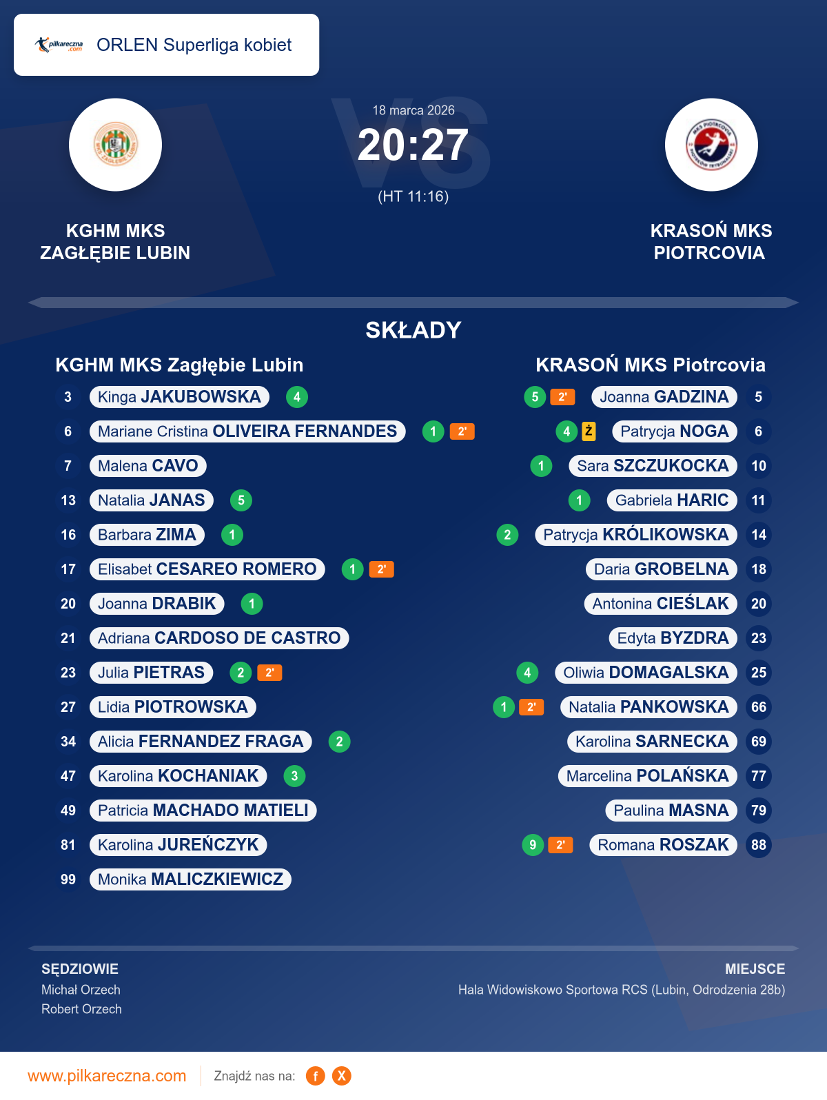 KGHM MKS Zagłębie Lubin 20–27 KRASOŃ MKS Piotrcovia