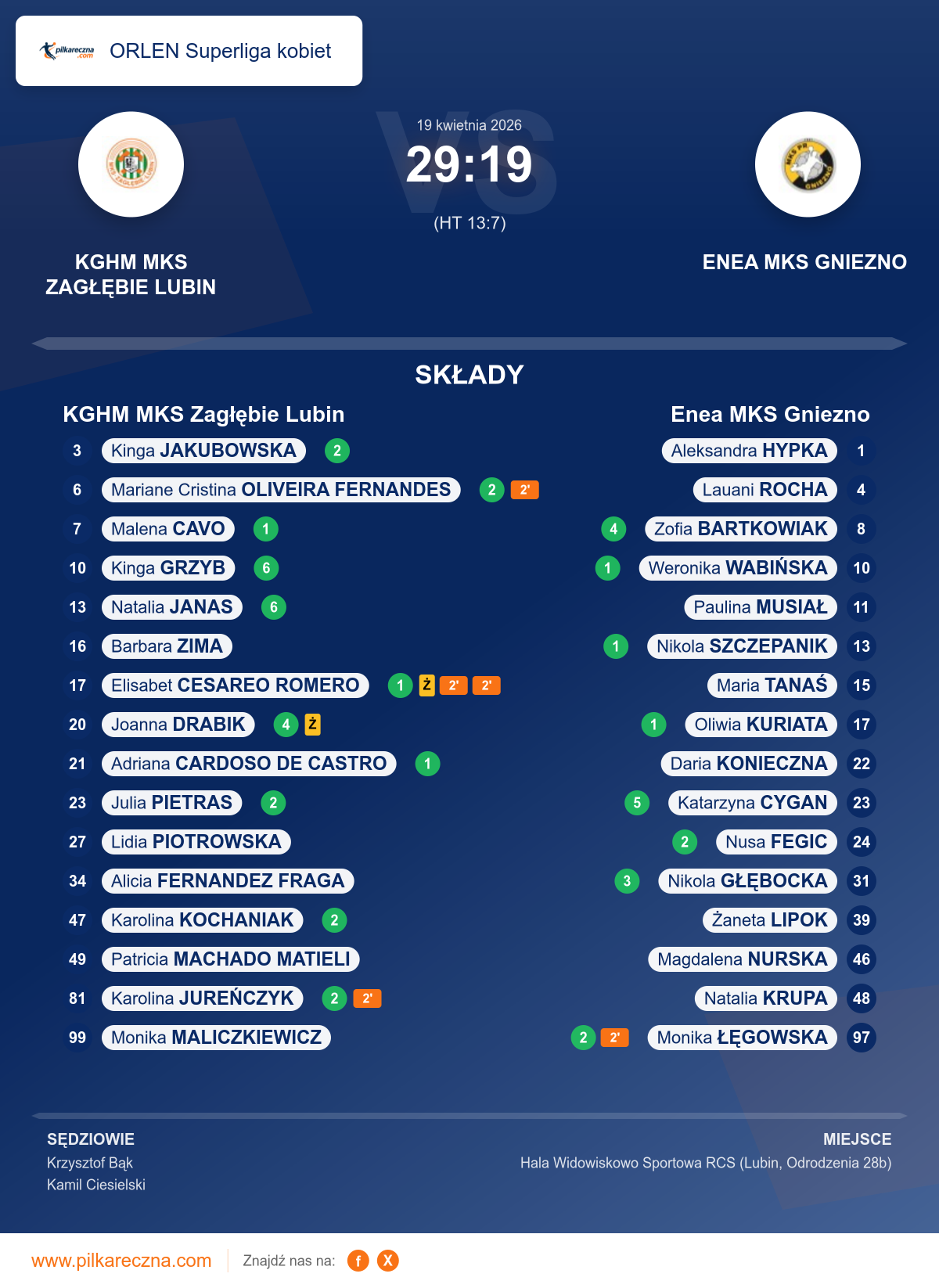 KGHM MKS Zagłębie Lubin 29–19 Enea MKS Gniezno