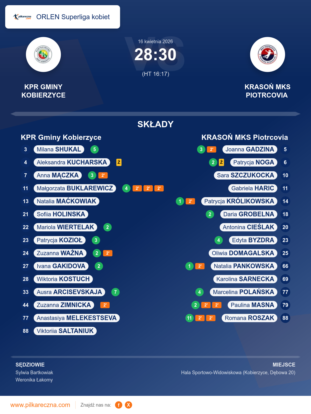 Sędziowali: Sylwia Bartkowiak, Weronika Łakomy