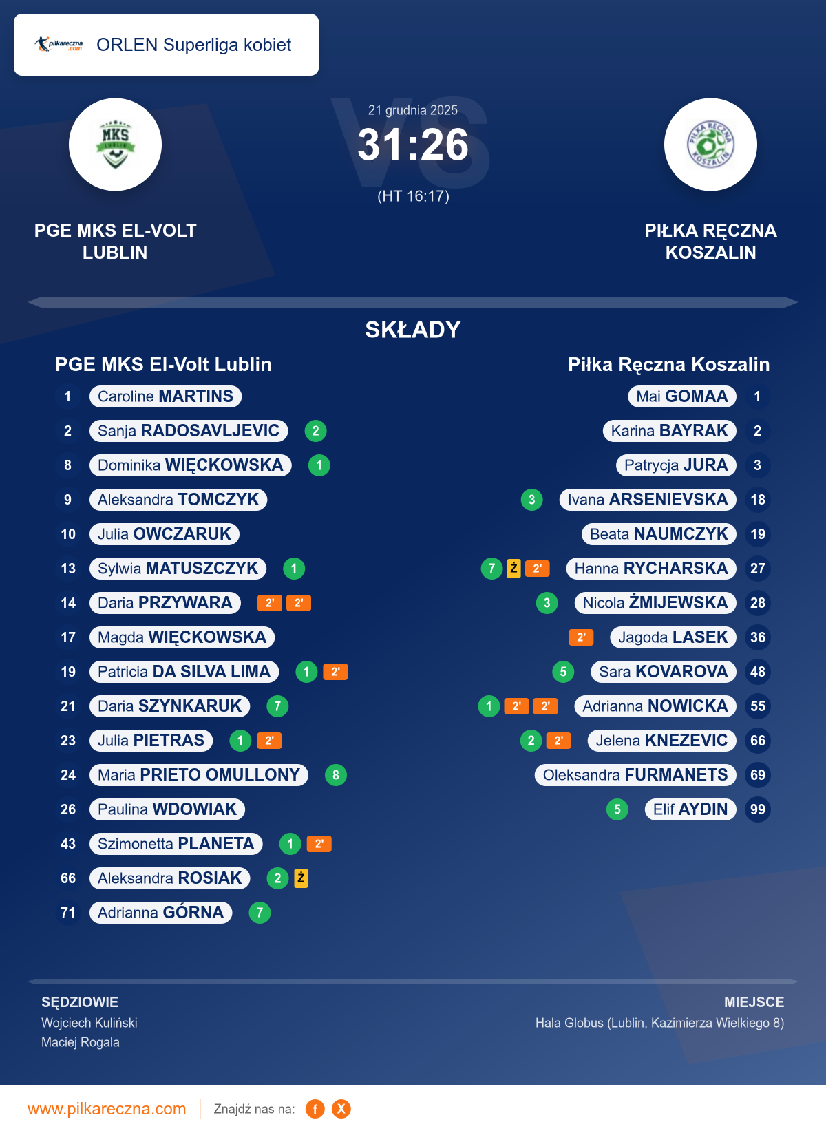 Sędziowali: Wojciech Kuliński, Maciej Rogala